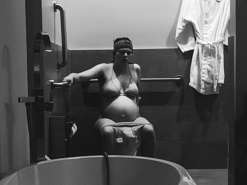 At 2:26 AM on the 11th, I woke up to pee and felt a little disappointed that waves had stopped building, though I had a good wave right after I peed. I waited to see if anything else would happen, and when it didn’t, I went back to bed. I was only lying down for a few minutes, though, when I felt a gush. I immediately turned on my lamp, startling Tucker, and told him my water broke. I hobbled back to the bathroom, where I was startled to find a lot of blood. In the past, everything has been clear when my water breaks, but this seemed to be straight blood and lots of it. I was pretty scared and told Tucker to call the midwife immediately. She asked if baby was still moving (he was) and told me they’d meet me at the birth center in 30 minutes and that the blood was probably just a sign that things were changing quickly, though I was skeptical. In the meantime, Tucker called my mom to come be with the kids, and she was there in seriously like less than 10 minutes. He got the car all packed and the car seat moved while I cleaned up and breathed through the waves.