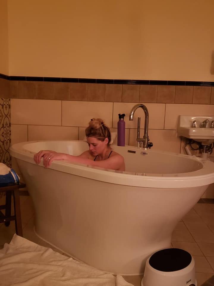 It all started on a Wednesday morning…I had overdone it on a walk with my son the day earlier and woke at 6 am with terrible discomfort in my right round ligament area and just couldn’t find a comfortable position whatsoever. I decided to hop in the bathtub and a few minutes in, I was puking. Pressure waves (Hypnobabies word for contractions) started. They were very inconsistent as far as timing went, but strong. I felt like I didn’t have any relief in between waves, they were almost constant. I tried to lie down and listen to a few tracks to get comfortable, but I struggled. I couldn’t stop puking and feeling like there was just no relief. My hypno-doula came over and tried to help me get comfortable.
