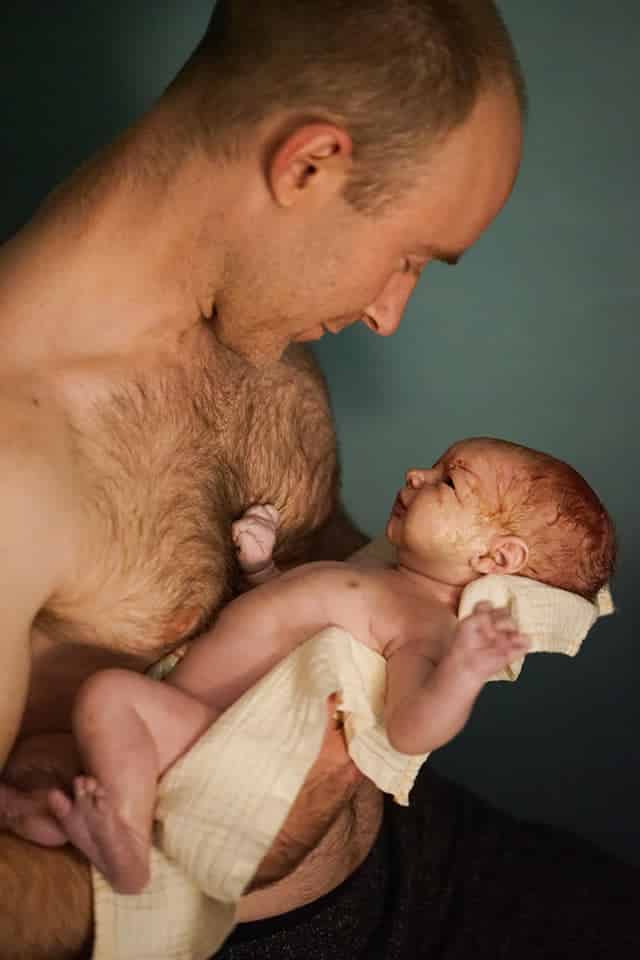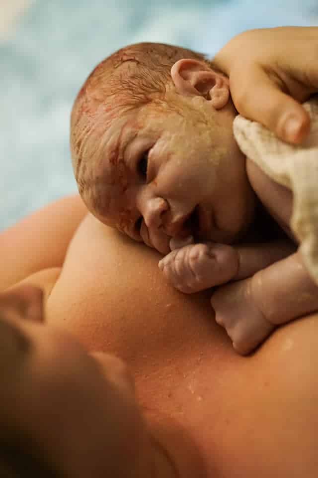 We got to the birthing center again at 3 PM and now I was at 9 cm with just a paper-thin lip left on my right side, but it would still be a little over 8 hours until he was born. My doula was able to help break my water by using massage and counter pressure when I laid on my side. Once the water was broken, his head fell down in my birth canal right away, and pressure waves turned into pushing waves.