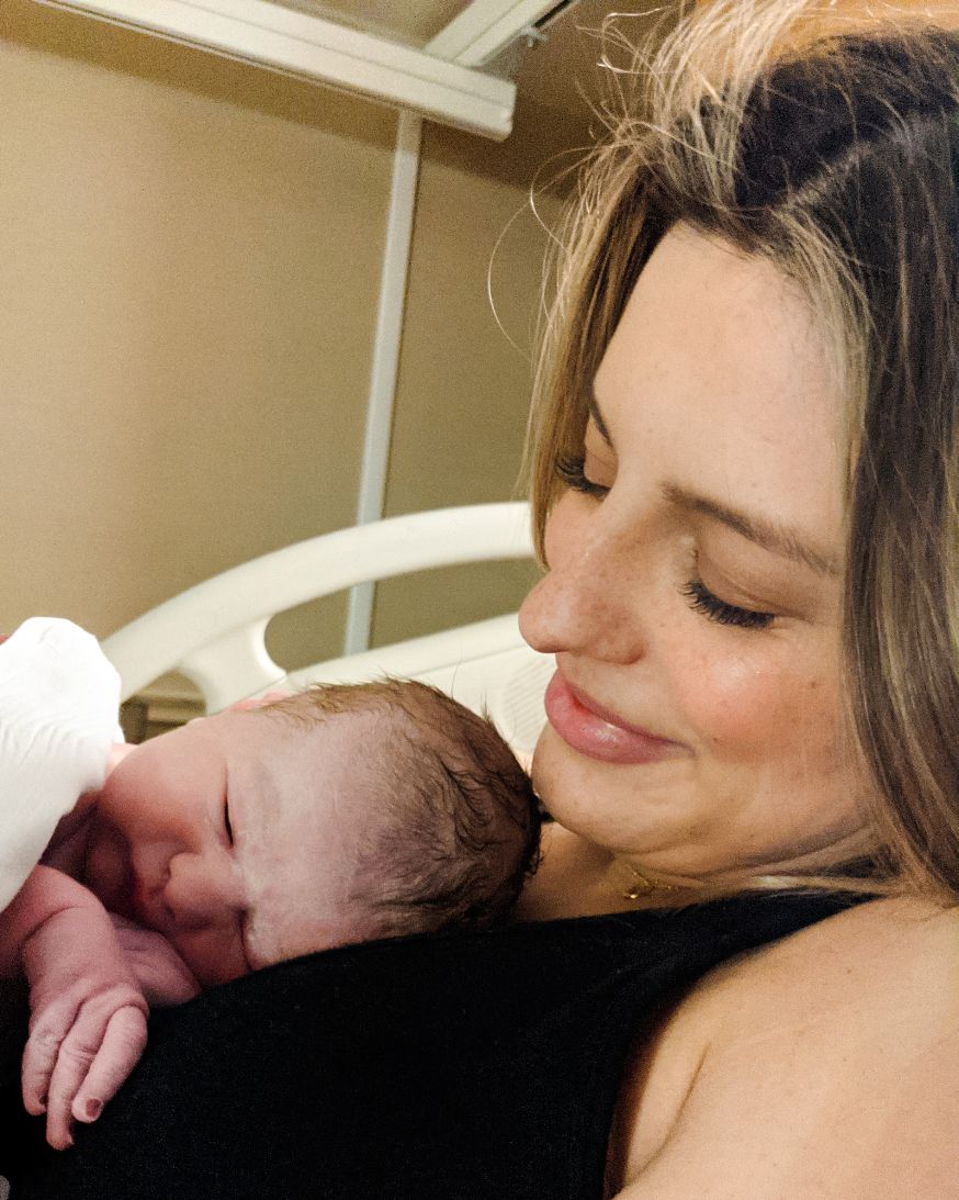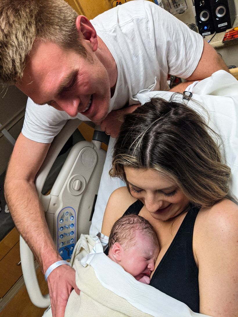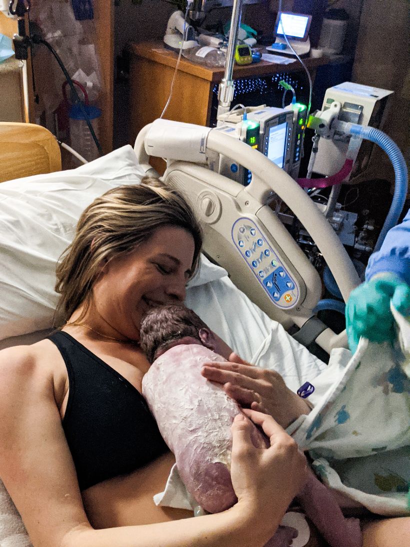 “My husband was so supportive and reassured me that the more powerful the waves were, the closer I was to holding our girl. About 40 minutes later my body began to push on its own and I told the nurse that the baby was coming. She checked my cervix and immediately called the doctor and said the baby was close!”