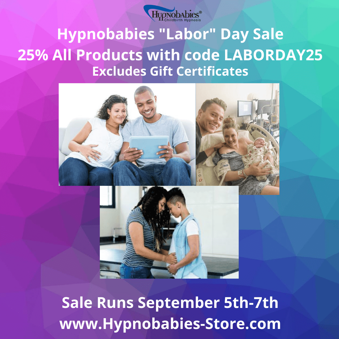 Hypnobabies Childbirth Hypnosis is having a Labor Day Sale: 25% off our Online Hypnobabies Home Study Course and other products (excludes gift certificates) with discount code LABORDAY25 – Sept. 5- 7 2020 ONLY at www.Hypnobabies-Store.com!