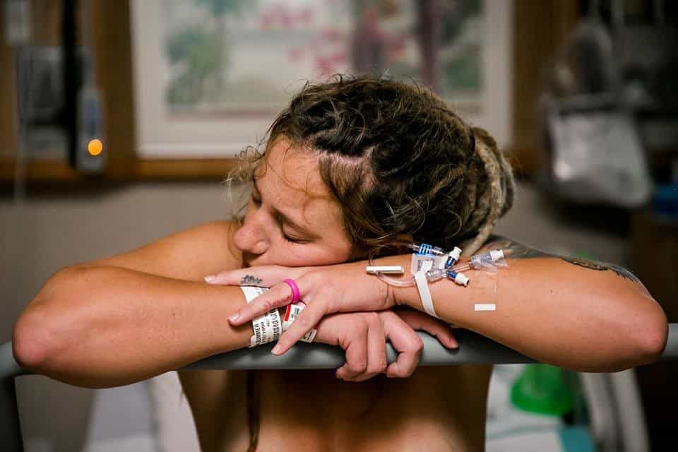 I was so tired from swimming and walking literally all day, I wanted to try and rest since I was in my own room now. I tried to lay on my side while they listened to baby’s heartbeat for a bit to regain some energy but the pressure felt much more intense when I was sitting still. This pulled me out of my hypnosis and started to distract me because it was a little harder to release the tension I was building up. I was caught off guard by how much harder it was to breathe with pressure starting to go further up my stomach with each passing wave.