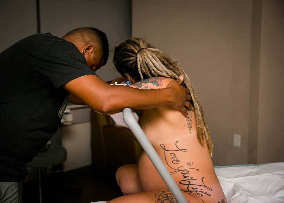 The last time I made my way to the shower I was sure I couldn’t go any longer, I felt such intense pressure and it hurt to even stand. I laid on the shower floor and just cried to Darnell I couldn’t do it anymore, I was done. He sat on the floor with the shower door wide open as he gets soaked and just told me how proud he was of me. We were so close to meeting our baby, I could do it! This gave me the extra push to believe in myself that I needed and gave me the burst I needed right in time for baby to move down into position. This was the last move to the bed I