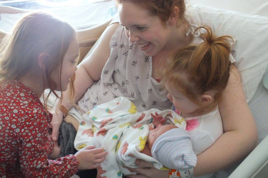 It was a déjà vu from my birthing time with Sophia. However, when the doctor checked me this time I was complete, with the exception of a slight anterior lip. She was explaining that she could move it and I could push the baby past, but as she was talking my body had another wave and the doctor said to the nurse never mind the lip was gone and I was fully complete. Soon my body began to have pushing waves and I tried to find the best position for me. My husband put on the Pushing Baby Out track (Hypnobabies hypnosis track just for comfortable pushing) but got flustered because he couldn’t figure out how to put the track on repeat, and between pushing waves I explained what he needed to do.