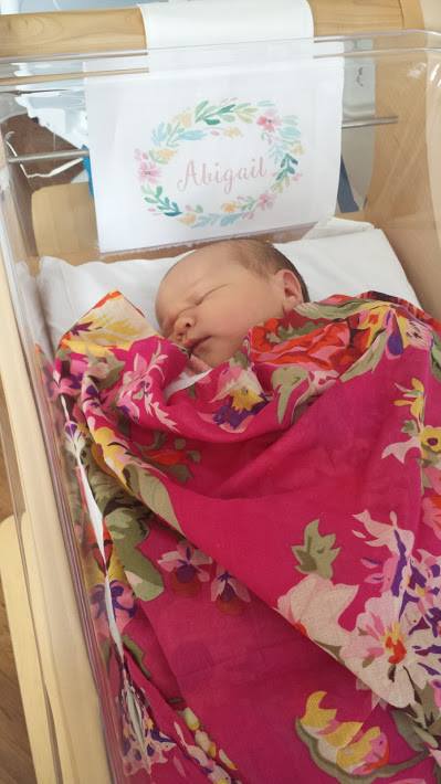 After about 25 minutes of pushing, I turned around and picked up my baby girl! I don’t remember exactly what I said, but I think it was along the lines of “You’re finally here!!! Hi, baby girl, we did it!” ☺ Abigail Louise was born at 12:14 AM on March 20th, weighing 9lbs 3oz and 21 inches at 40+5.