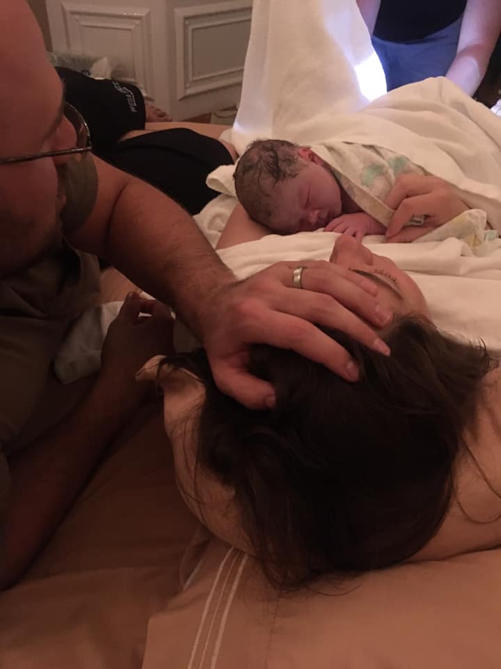 I wanted to share my birth story because I’m still a little shocked at how it went! My beautiful baby girl was born last night at 9:02 pm after 2 1/2 hours of birthing time. Around 6:30 I started having waves (Hypnobabies word for contraction) about 50 seconds long every two to four minutes. I could talk through them so I wasn’t too concerned as we had so many false calls. I called our midwife an hour later and she still thought we were away off from anything.