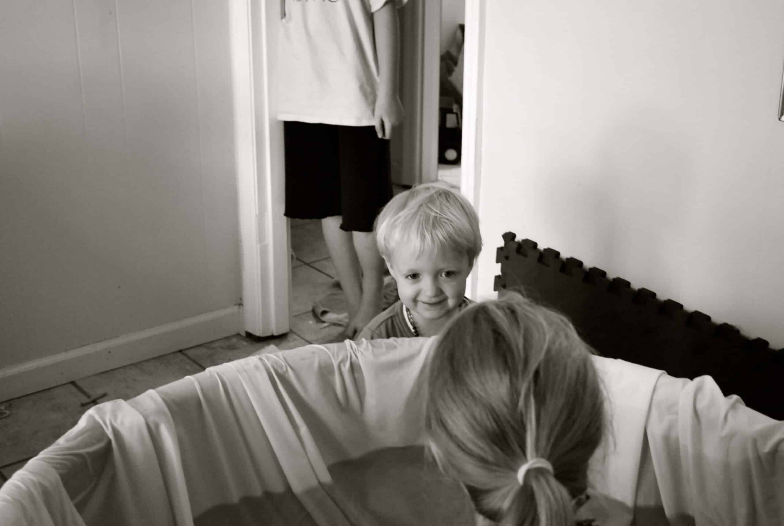They brought in their supplies as we began filling up the birth pool. While I had laid down, Damon had somehow managed to get water boiling on the stove to provide extra heat if we needed it in the birth tub and had also duct taped a white sheet to the inside of the watering trough/birth pool. I was sitting on the birth ball next to the pool, waiting for the water to get higher and the right temp. I used the restroom a handful more times. Whenever I sat on it, I thought of it like a birth stool. I would almost always have a pressure wave while sitting on it.