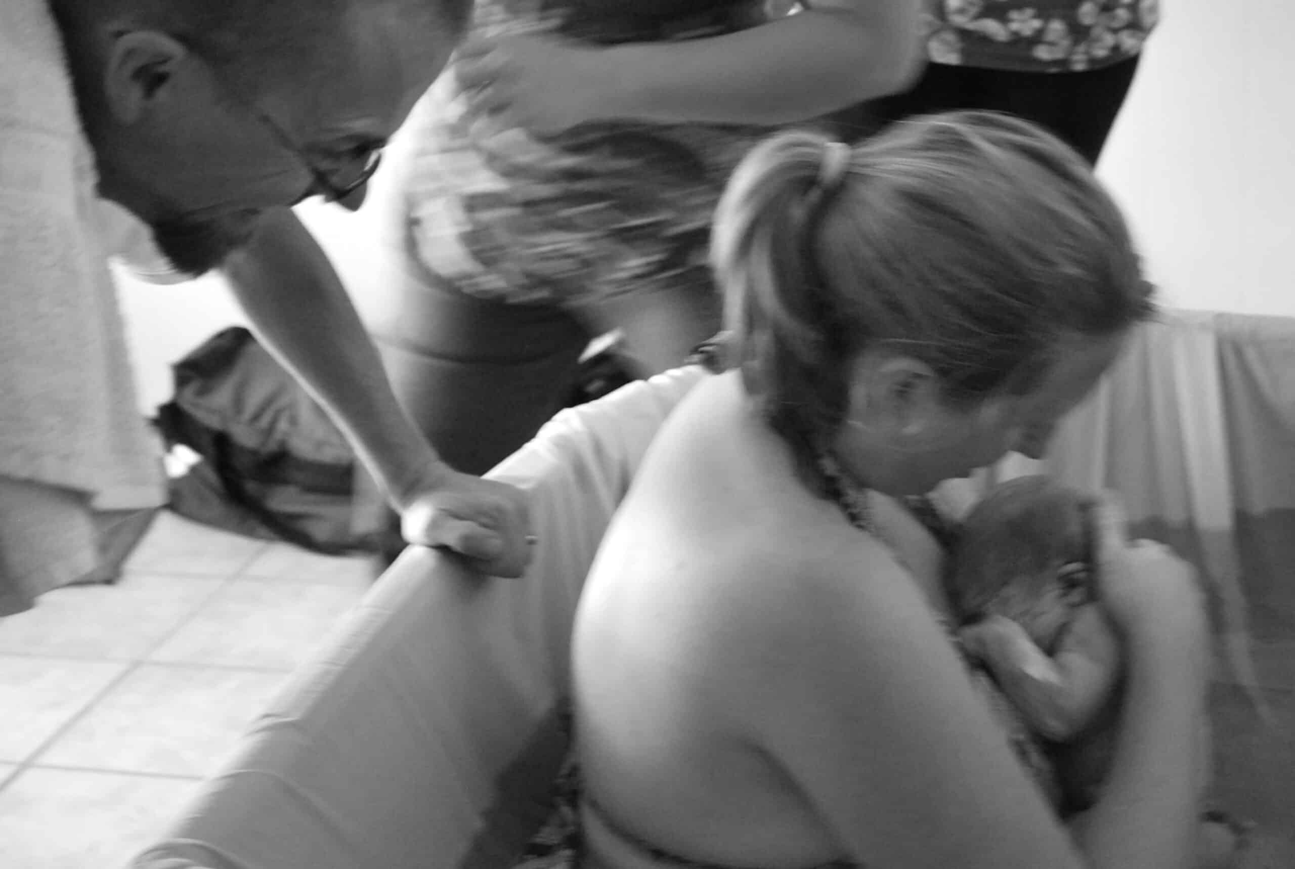 The waves were coming quicker and quicker. Debi went to monitor the baby while I was in the water. As her hand held the doppler to my belly, I said, “Wow, did you just feel the baby rotate?” She did. I have never actually felt my babies movements during birth. Another very special thing about this particular birth.