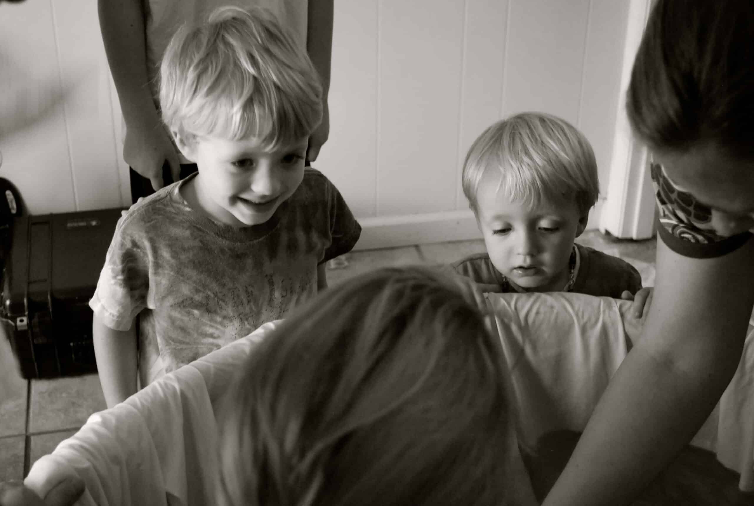 Once the baby rotated, I started to feel like I could push. Remember, I had no vaginal exams. I loved that no one said, let me check you. They could hear the sounds changing from loud moans, to lion sounds. I asked for Liam to come downstairs. I wanted to see him. He came and looked in the tub asking if the baby was coming soon. I kissed him and then he left the room as another wave sent a roar through me, roaring the words “Open.” I laughed as the wave ended because I could hear him say, “It sounds like a lion!”