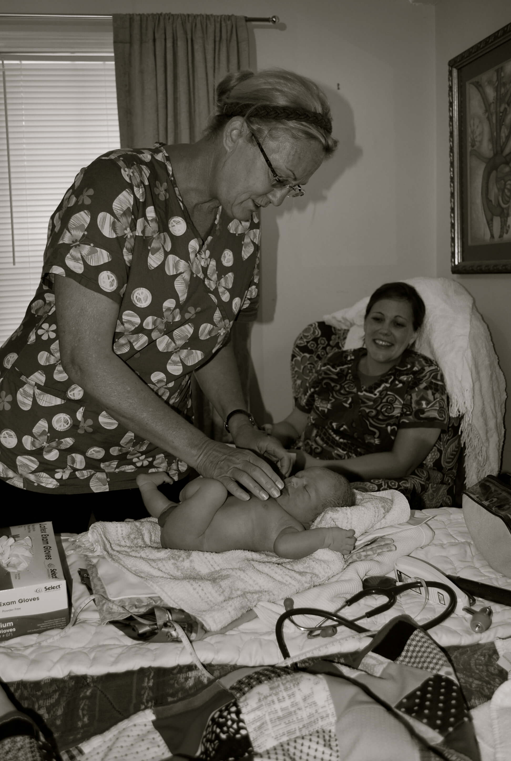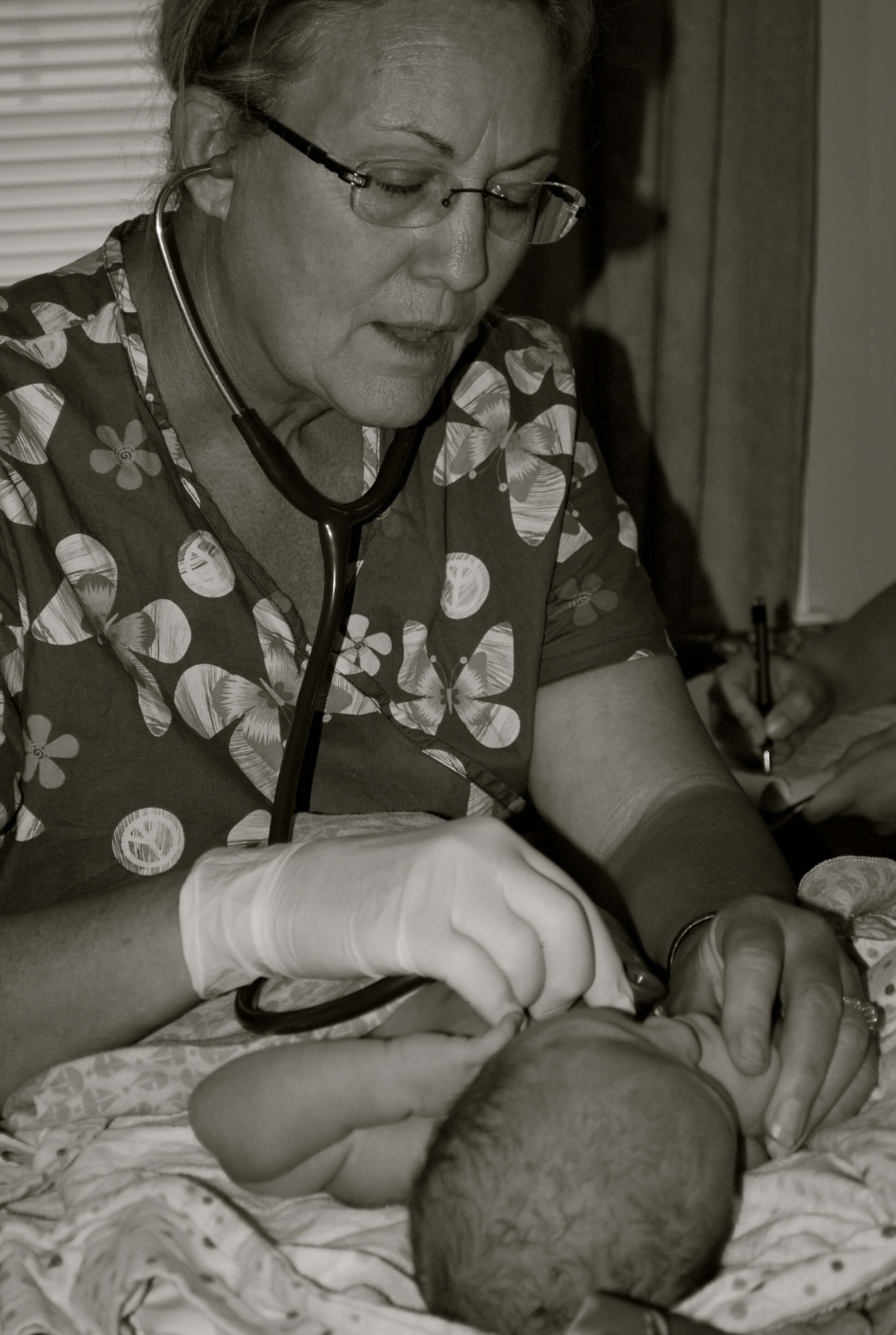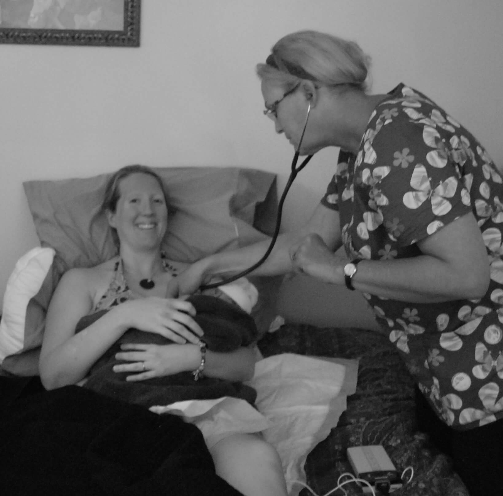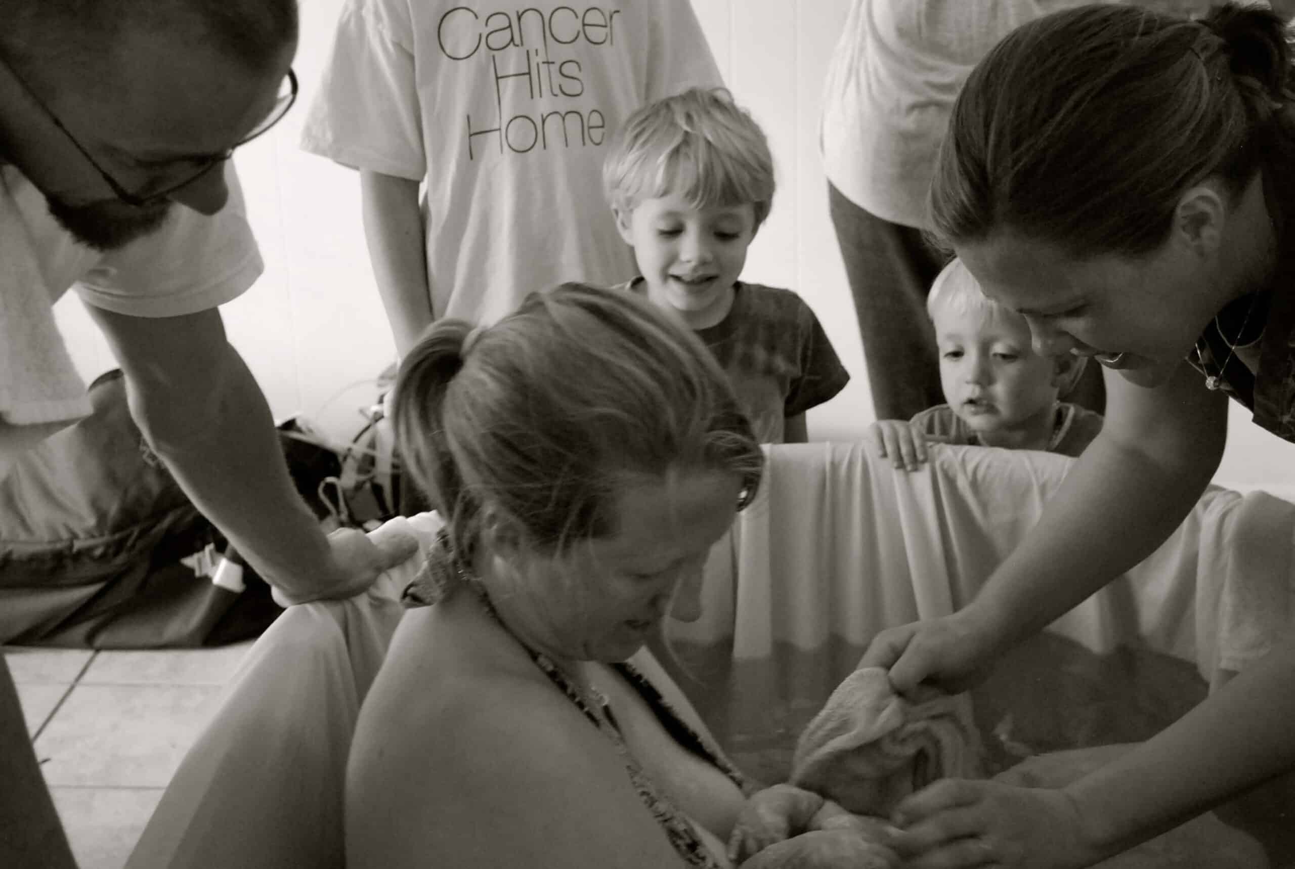 I couldn’t be happier with the way this birth turned out. All my wishes were respected. Not knowing Debi, I wasn’t sure if she would follow my wishes, try to do a bunch of vaginal exams, or even try to get me out of the water. All she did was monitor me as she needed to and keep the tub water warm enough. My doula, Amy was amazing in remembering to take the photos that I wanted and to use her hypno-doula tools perfectly. Rachel the assistant had great touch on my lower back and all of them said encouraging words during the birth. My husband was always where he needed to be. Keeping the water boiling to keep the tub the right temperature; being next to me as I needed him and just being all around wonderful. I was so thankful that my Mom was finally there for one of my children’s births. It wasn’t her fault that she wasn’t there for the others, but this time she along with my doula’s daughter Miriam kept my children entertained as necessary.
