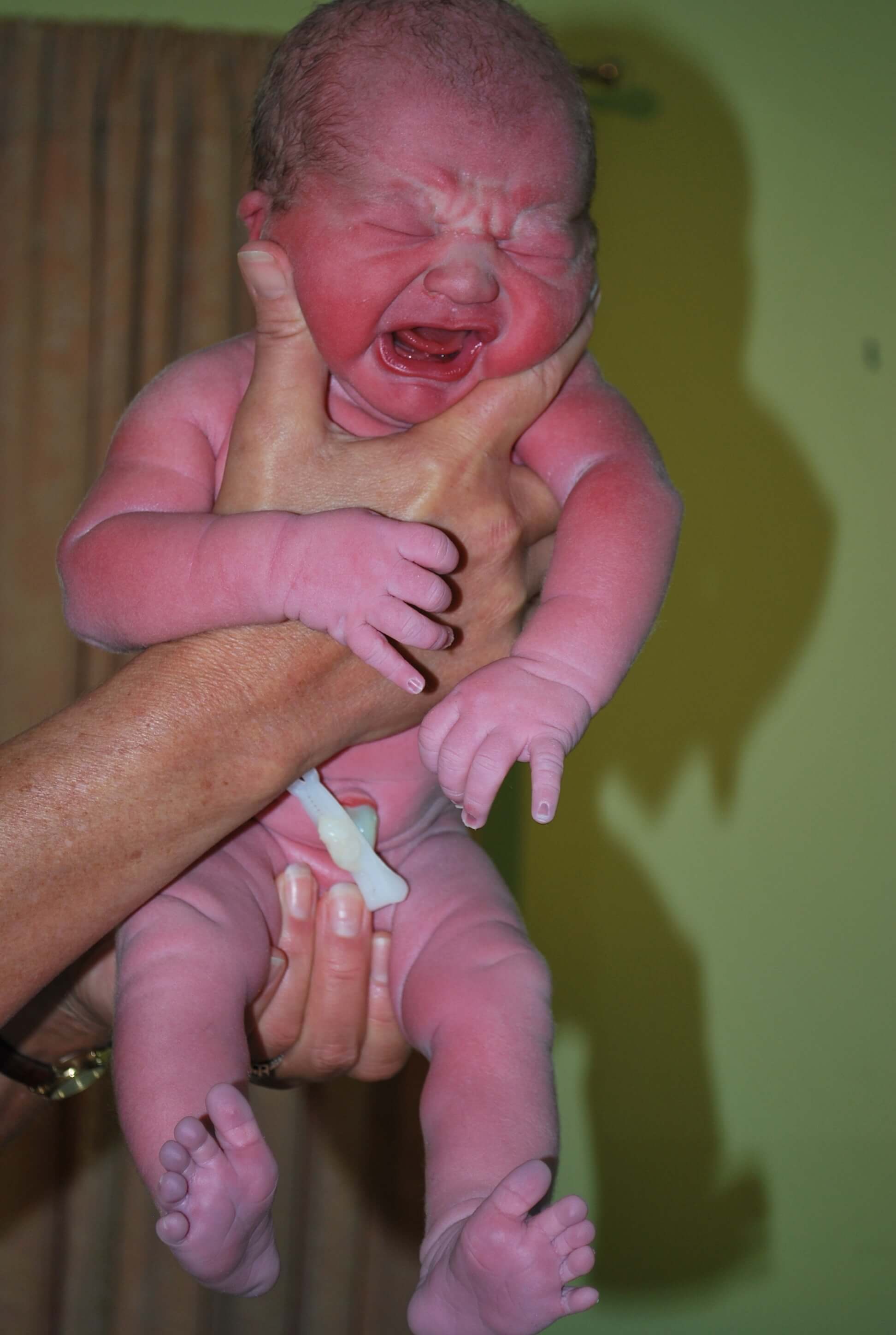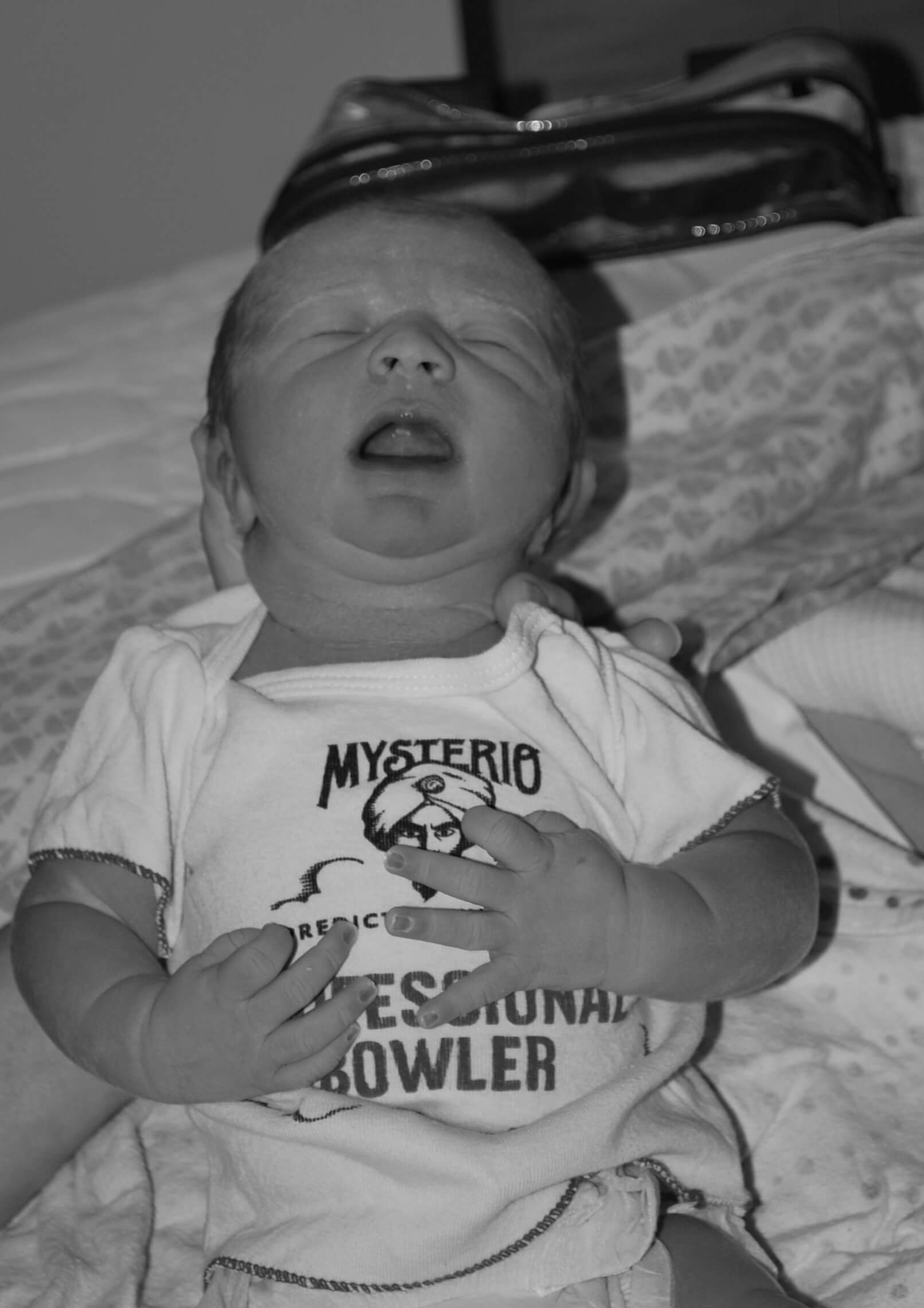 Liam and Nick were born with almost no vernix, but this baby was so sticky with it. He was wonderful, perfect and held to my chest.