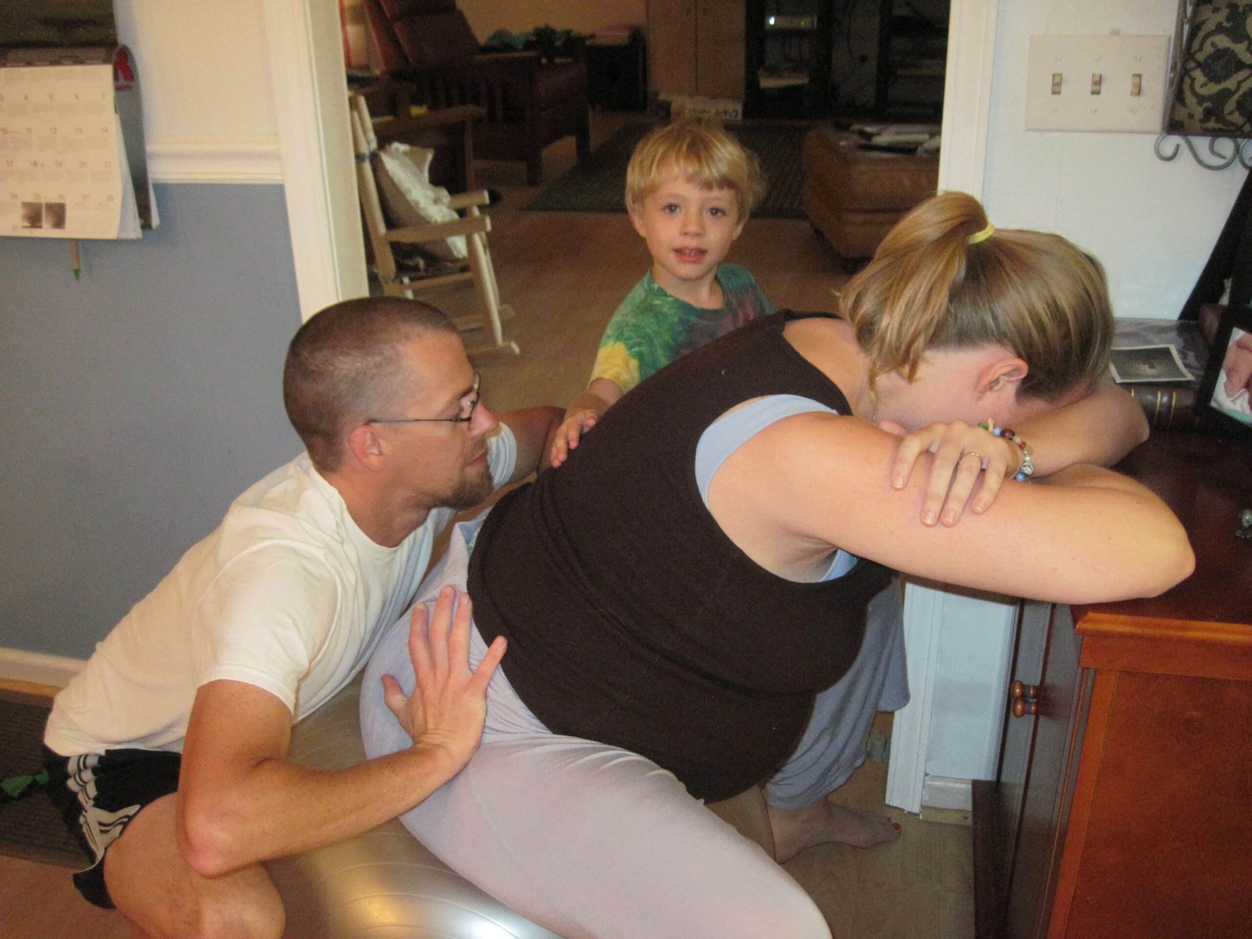 I sat on the birth ball in the kitchen while my husband cooked and my mom sat at the kitchen table. Whenever I had a pressure wave, Damon would come over and do a hip squeeze. I had to remind him how to do his hands. My mom even came over and did a hip squeeze, learning how I wanted her to put her hands. I had some pretty good pressure waves during this time. I resent my text to my boss from the day before while sitting on the ball, saying that I would not be in the office today.