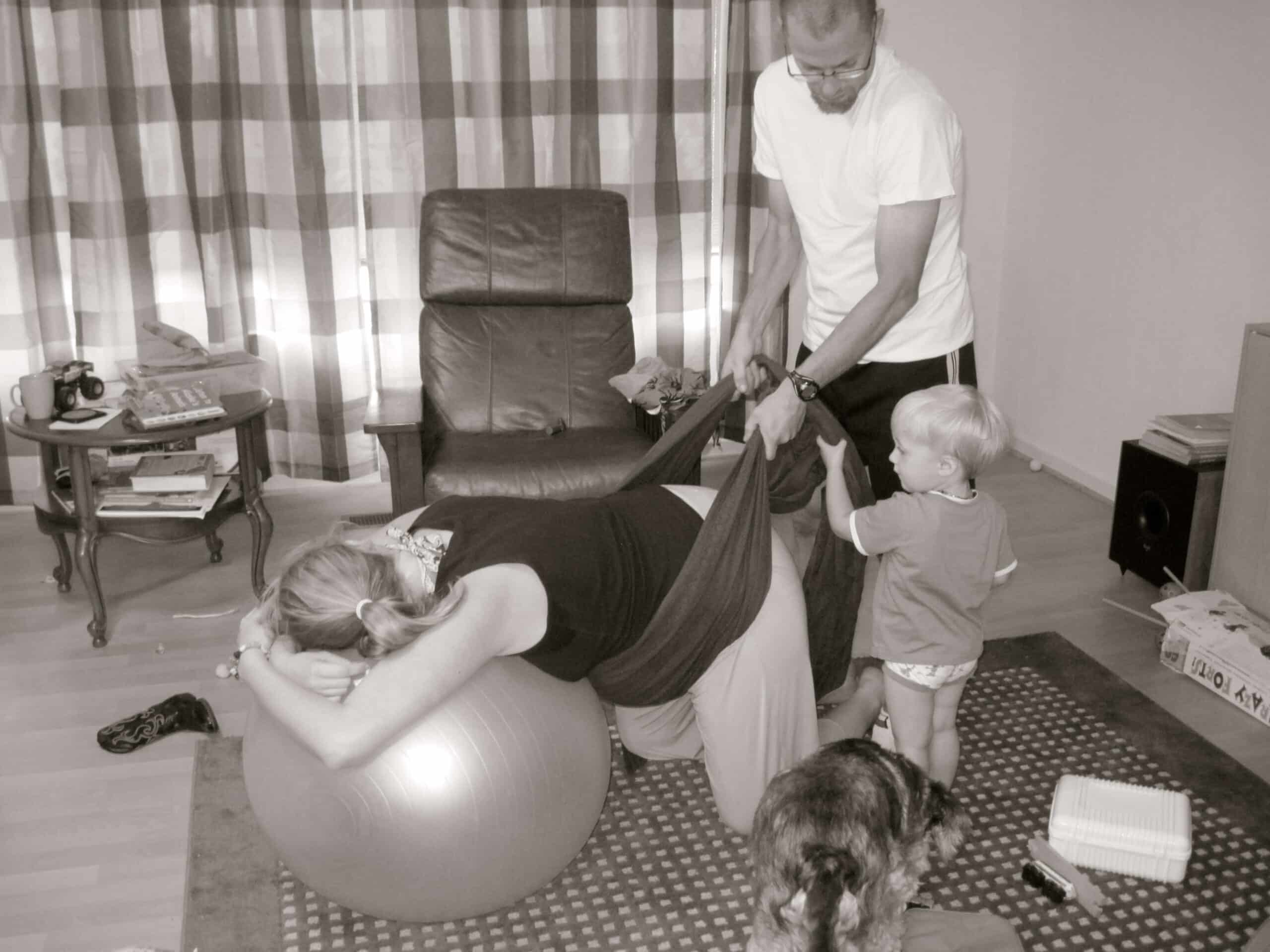 We went back inside and I wanted to try doing some rebozo sifting. I had Damon pull up the Spinning Babies website so that I could show him what I wanted him to do with the wrap. I then got down on all fours in the living room and had him do some gentle sifting. It felt really good.