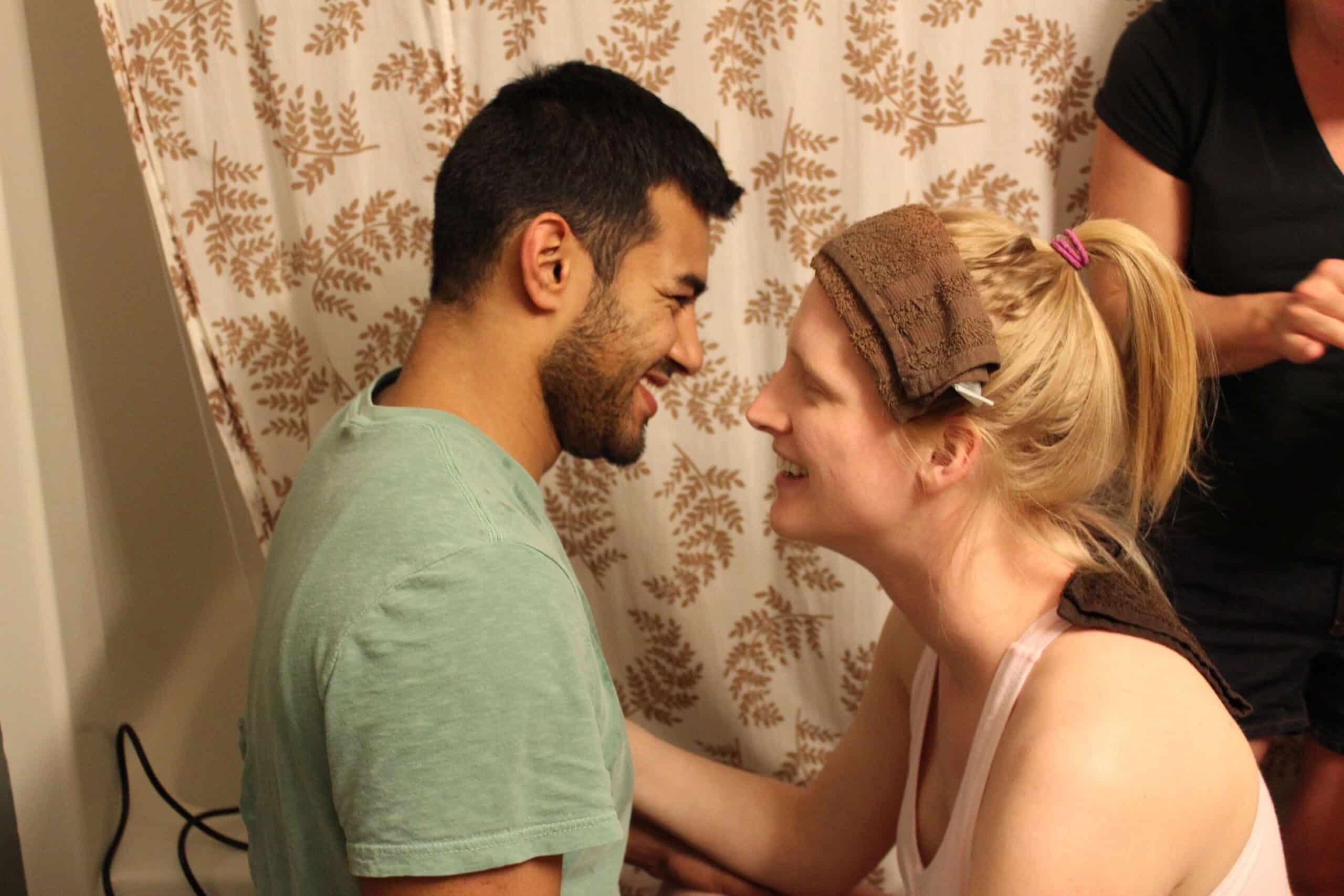 I did start to feel pressure waves (PW’s) but they didn’t feel much stronger then toning PWs so I ate the rest of my lunch while rocking in the rocking chair waiting for Lucas and Austin to arrive. The PW’s did pick up a bit till they were 4 min apart and I started to use my Hypnobabies hypnosis techniques to relax through them. Lucas and Austin arrived around 2 pm. My son was so excited he didn’t want to leave my side. We had to convince him to watch a movie and we would not let him miss it. I rocked on the birth ball, took a walk outside, sat on the toilet… threw up all my noodles on the toilet (spicy noodles were not the best choice but I felt great after they came out:) Shared some laughs with my mom and hubby especially when my mom was giving Lucas the analogy that a cat is like a wave. So after my next PW Lucas asked me it I held my breath through the wave cause that’s what he would do. I laughed so hard.