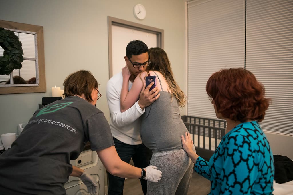 ~7 pm I asked him to message my birth team and tell them how close the waves were, and at that time I began to feel a slight sensation to hold my breath during my waves (like the feeling of getting in cold water). I remembered the same sensation moments before pushing my 1st son out, so at that time I told my husband we needed to leave for the birth center.