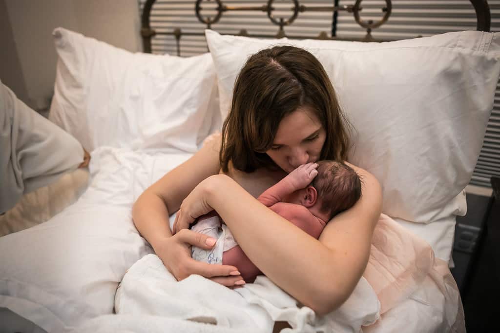 Around 7 am I was feeling sure that it was my birthing time as the waves were coming in a predictable pattern about 6-7 min apart. So, I notified my doula, Candace, birth photographer, Brezi, and midwife, Jolene, that baby was probably coming sometime today. From there, I listened to “Your Birthing Day Begins” which reminded me of all the Hypno-tools I could use throughout the day. I then put on my Relaxation music and just snuggled in bed with my husband having a lazy morning.