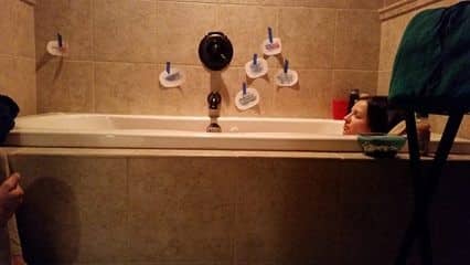 I got into a warm bath and listened to my Easy First Stage hypnosis track (Hypnobabies main birthing day track) as my husband made breakfast for our now-awake toddler and made arrangements for a friend to watch him. My 2.5-year-old toddler wandered in and out of the bathroom, bringing me a banana and granola and rubbing my arm during pressure waves (he was a great help!) I was relaxed between waves, able to talk to my son and read the affirmations we had taped to the wall.