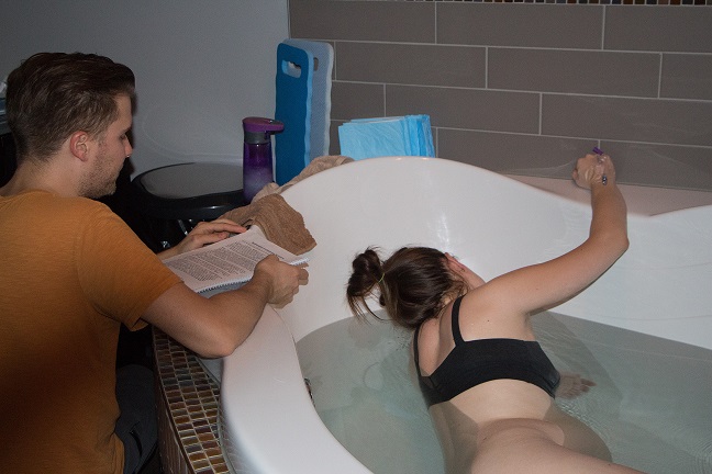 I found out later that I was already 6-7 cm dilated when we reached the birth center. I listened to Deepening my Hypnosis before leaving our place, Visualizing Your Birth in the car ride (it was SO helpful!) and we listened to the relaxation music the whole time at the birth center with Gary reading me the prompts. For me, hearing his voice and having him choose the prompt that he thought I needed was perfect.