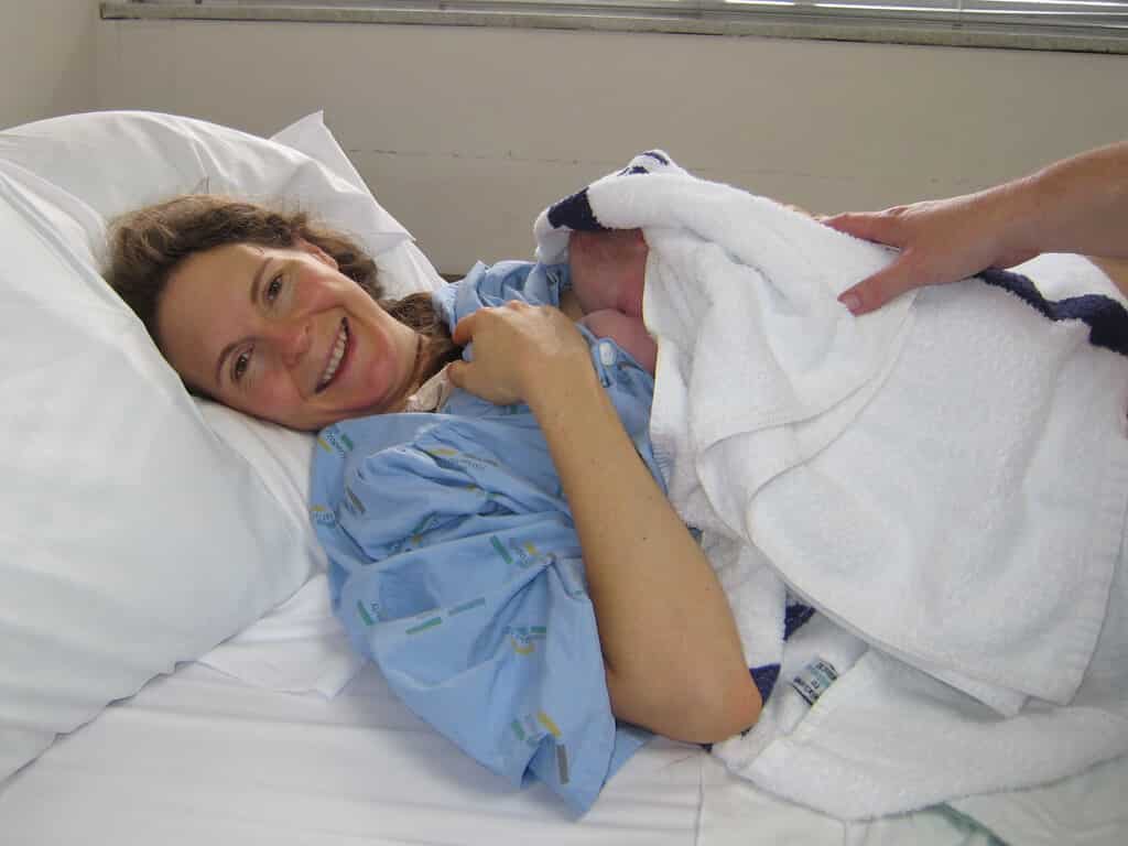 Within 5 minutes he was helping himself to his first feed. The physiological 3rd stage happened just as I had visualised it. I felt great afterwards– the birth was smooth and practically bloodless. I didn’t have even so much as the tiniest scratch and swelling was almost nil. And who cares about “sticky shoulders” when they come unstuck so calmly and easily! We went home a few hours after Reed was born.