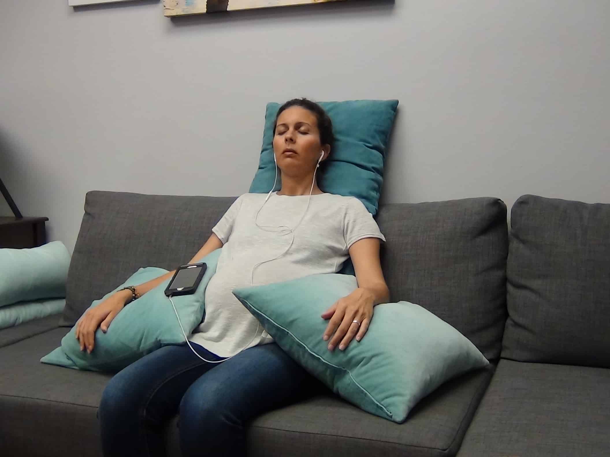 The difference is in the depth and purpose of the experience. Hypnobabies uses a very deep form of hypnosis — somnambulism. It is so deep, in fact, that it must be practiced in a completely supported position, such as lying down or reclining in a cozy chair or sofa, with your head and body fully supported. This allows every muscle to relax completely while your mind becomes wonderfully focused.