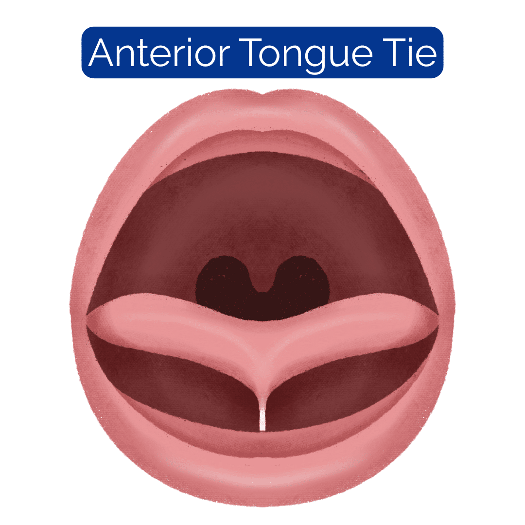 This is the most visible form of tongue tie. The frenulum attaches near the tip of the tongue and clearly restricts movement.