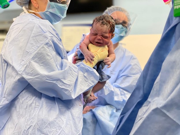 *BOP* Feeling exhausted and a bit defeated at this point, I decided that an epidural was the next best path forward for my birthing journey so that I could remain calm and maintain my Bubble of Peace. After receiving the epidural, I was able to move into different birthing positions and listened to tracks to deepen hypnosis as I patiently waited for my birthing time. Fast forward a few hours late into the night, I was greeted by the OB/GYN with news that my body temperature was starting to spike, and the baby appeared to be in distress and strongly recommended moving forward with an immediate intervention of an emergency cesarean to prevent further complications. I’m pretty confident that it was my state of hypnosis that I was able to remain calm and peacefully come to accept a completely different (and unexpected) birthing experience.