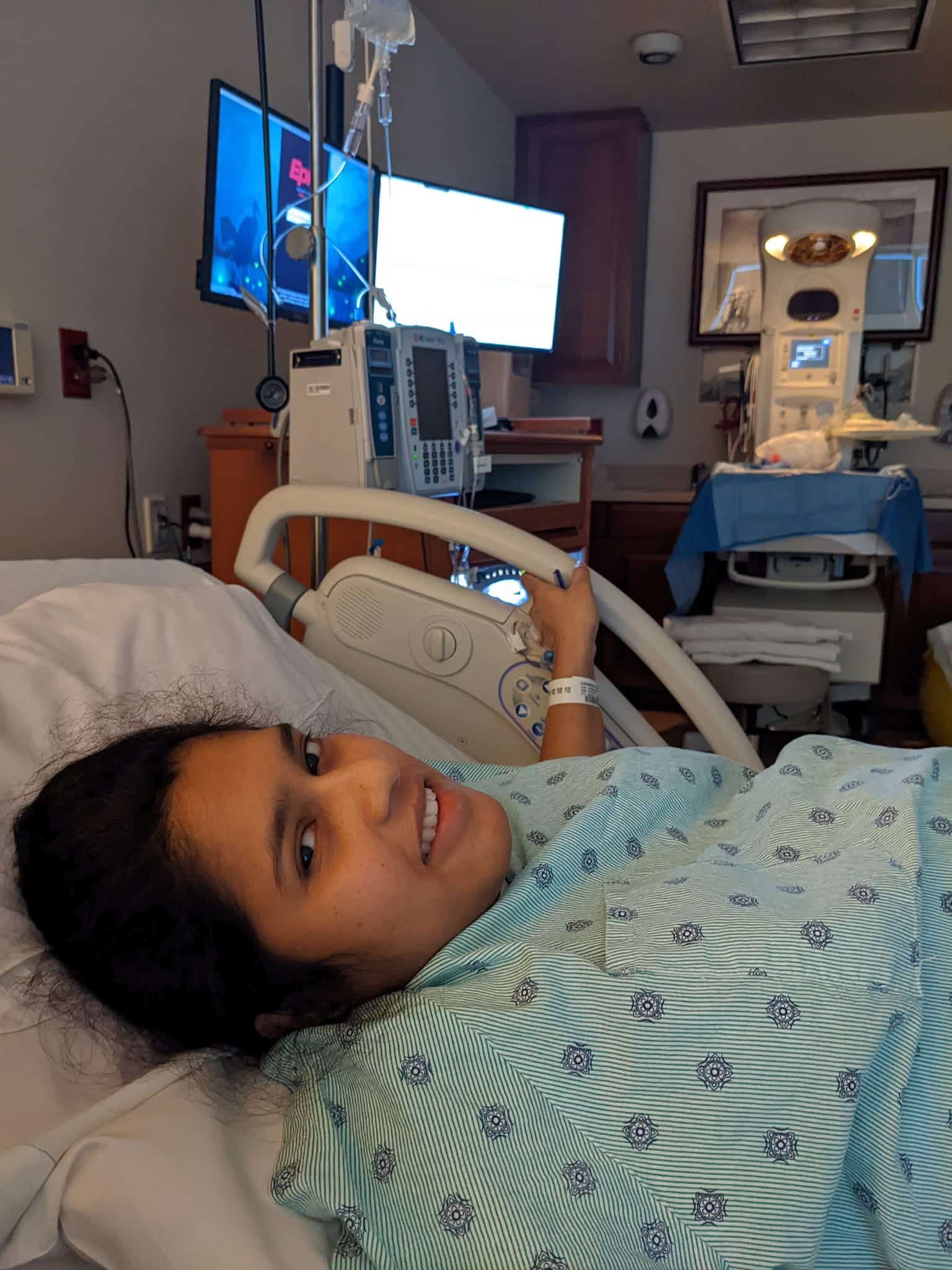 Week 41 and I got admitted to be induced. My doctor first broke my waters and started a small dose of Pitocin around 10 AM. The staff was very mindful of my birthing preferences and respected my plan throughout. I started getting significant pressure waves around 11 AM. Like the tracks suggest, they felt like blood pressure cuffs, and I was smiling between waves. Things got intense within the hour, and I progressed really well. My nurse and my husband were impressed with how I was handling the intensity and could still have a conversation between those intense waves. I had “Easier First Stage” (Hypnobabies main birthing time track), “Birthing Day Affirmations”, “Deepening Your Hypnosis” (Hypnobabies track for deepening the level of hypnosis) playing for a while.