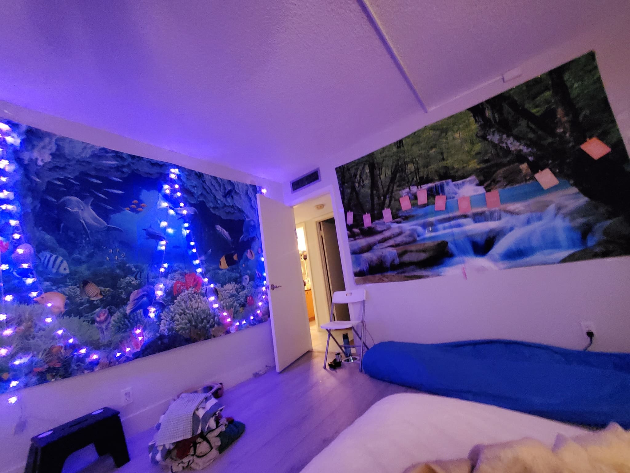 The walls had colored twinkle lights dangling from the ceiling to the floor for my home birth. My peppermint, eucalyptus, and lavender oils were ready, and Hypnobabies affirmations were playing. My husband had relaxing spa music playing. The mood was set exactly how I had wanted it.