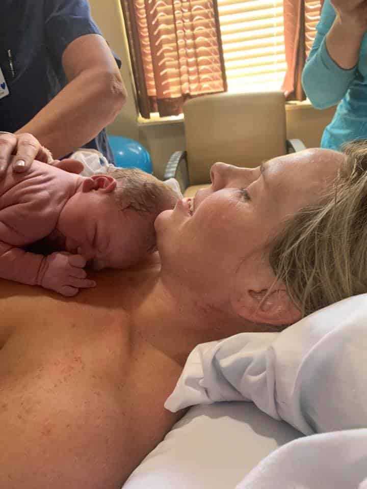 They kept telling me I could touch his head and I did a couple times but felt I needed to stay focused for the next urge to push. I do remember a different sound after another big push, and I think there was cheering. They kept telling me to look and I hesitated because I needed to focus for the part after the head, finally I looked, and they handed me my baby boy .