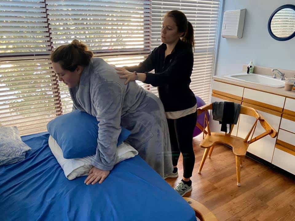 afternoon, we went to the birth center for an NST since my water had been broken for a while. The midwife advised that we go home and get some rest and I agreed. We headed back home and tried to nap but sleep just wasn’t happening with the waves coming and going. This whole time I had been listening to various Hypnobabies tracks like Easier First Stage (Hypnobabies main birthing time track) and keeping a calm environment. At 8 pm that evening, my waves were getting pretty close together so we went back to the birth center. I listened to Fear Clearing (Hypnobabies track to release fears) for the drive over. I decided to do a cervical check and was only 3 cm and 80% effaced. We decided to stay the night and the midwife was able to administer some morphine to try and help me get some sleep. Once again, I couldn’t really sleep through the waves- even with the morphine!
