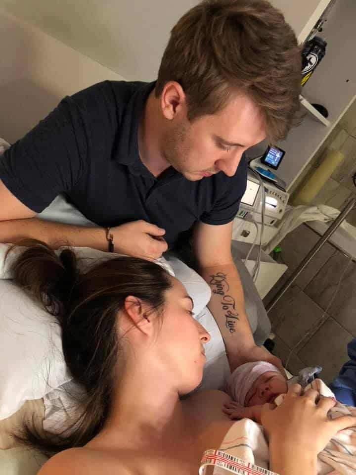 Realizing I messed up, at 1:30 PM we went for a walk and walked for about an hour and a half. We went home and I took a shower, started my birthing day tracks, and tried to pump just a little to see if we could get some progress and consistency in waves. I had a rush of emotion and called Hubby over. He said he felt like God wasn’t going to give us our girl until we prayed together about it. We snotty-cried prayed, and then he decided to run and get me something to eat. A few minutes later, God answered us with a resounding “Yes!” when my waters broke and he had to get out of the drive-thru to come back and take me to the hospital.