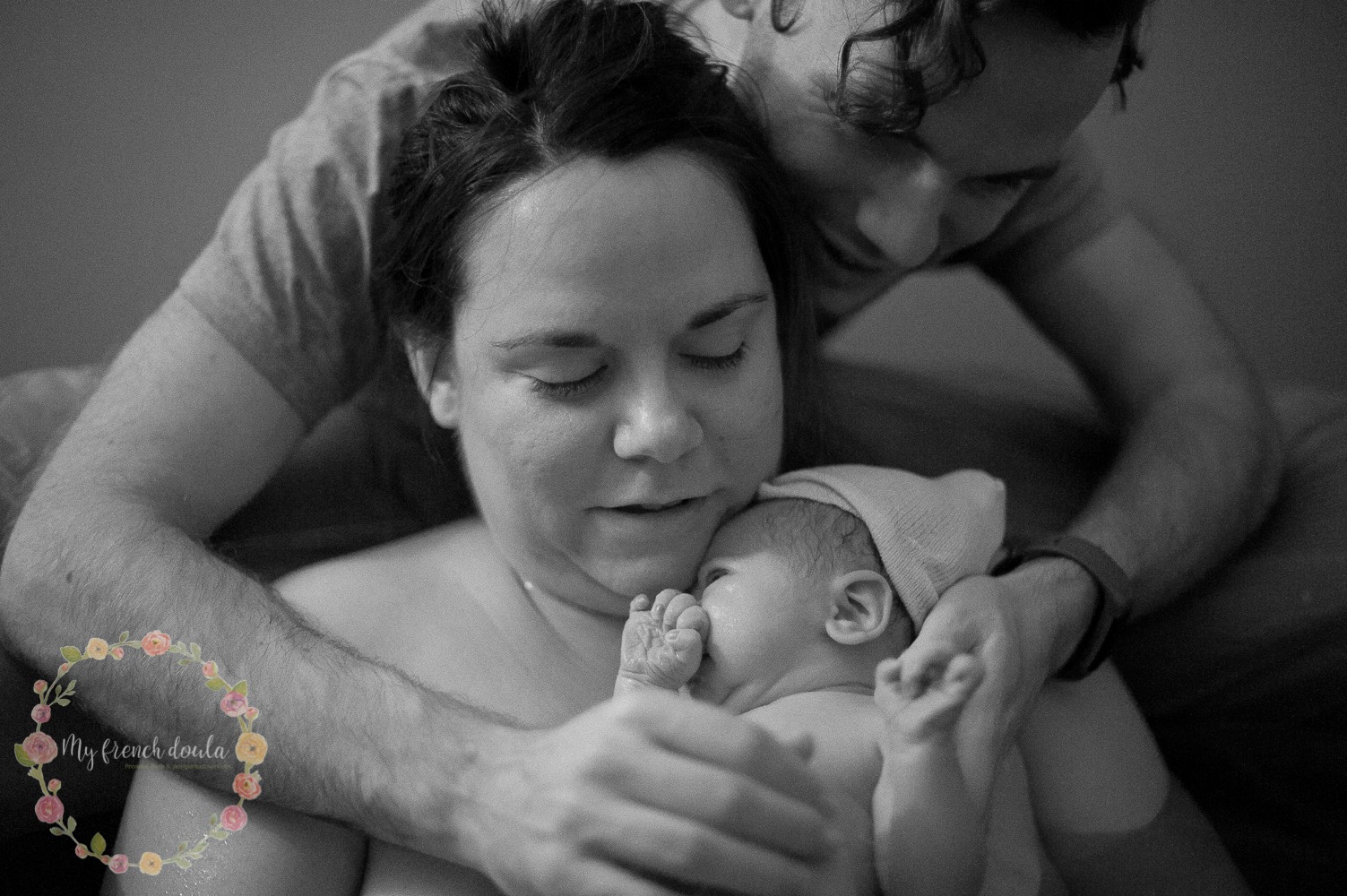 We had a home birth and as a first time mom I was able to give birth in a birthing tub, which felt so amazing! My parents, my husband, my midwife and midwife’s assistant, and doula were all in the room with me as my baby came out and I caught her! The whole thing was the most romantic and intimate experience of my entire life! We had candles everywhere and had Hypnobabies playing in the background. It was very spiritual and again was just amazing! I wanted to share some photos, my doula, Mathilde Bourgon took! Also wanted to give a shout out to Dana Nassau who taught us Hypnobabies!
