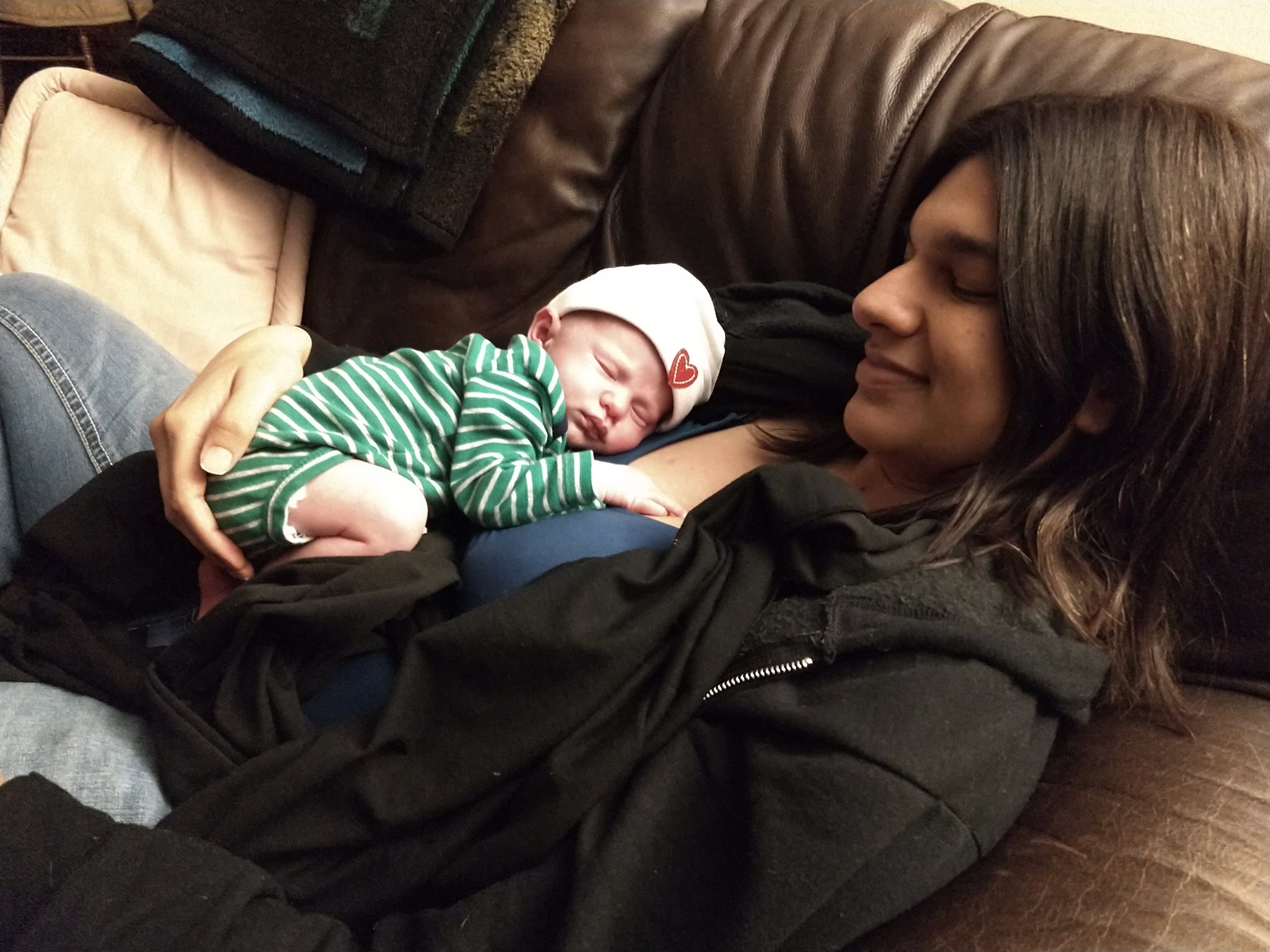 During transformation (Hypnobabies word for transition), I never felt the urge to push, so I unfortunately ended up on my back and needed some coaching. But after 40 minutes of pushing, I gave birth to my little boy Kiran at 11.19am on November 15! He is strong, but little at 6lbs, 3oz.