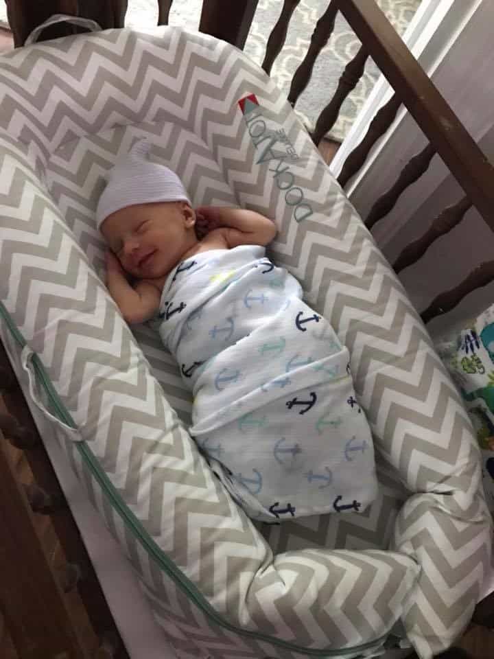 The waves were getting so intense I asked for pain medicine. The midwife checked me, and I was 8 cm dilated and 100% effaced. Too late for any medicine. As she told me that I felt a huge gush and my water broke. I quickly progressed to 10 cm dilated. I laid on my right side as my husband held my left leg up and turned Pushing Baby Out (Hypnobabies track for pushing stage) on the speakers and I focused my attention on my anesthesia. 10 minutes later I hear the midwife tell my husband to see your son coming out, and then she tells me to grab my baby. I reach down and pull him to my chest. Chase was born on August 29th at 4:13 pm in the triage room. The whole experience is still so surreal, and I am so thankful for Hypnobabies giving me a calm pregnancy and birthing time.