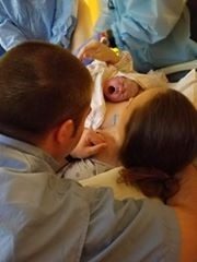 The next two waves were intense, but still manageable with the refocus. At this point, I felt my body start to push. I remember yelling at the nurse that this baby was coming, and she told me to stop pushing unless I wanted her to birth my baby. 🙂 I couldn’t stop it, though. My body needed to push. At the time, I had been lying on my side with a peanut ball because it seemed to intensify my waves. I found it impossible to change positions. Once I started pushing,