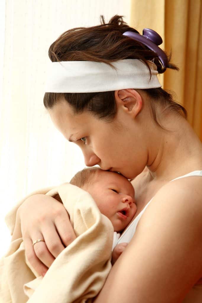 Turns out that he had a hand on his cheek and his chest and head measured the same. DH caught and pulled him out of the water. After their initial eye contact, our son turned his head and looked at me. DH placed him on my chest. I don’t remember him crying, and he was alert and calm. The midwife and DH helped me out of the tub and to the bed. After waiting for the cord to stop pulsing, cutting the cord, birthing the placenta, and getting one stitch, my husband and I spent the next 45 minutes alone with our baby. Then they did all the usual stuff, and we discovered that he was 7lbs 11oz and just over 20 inches.