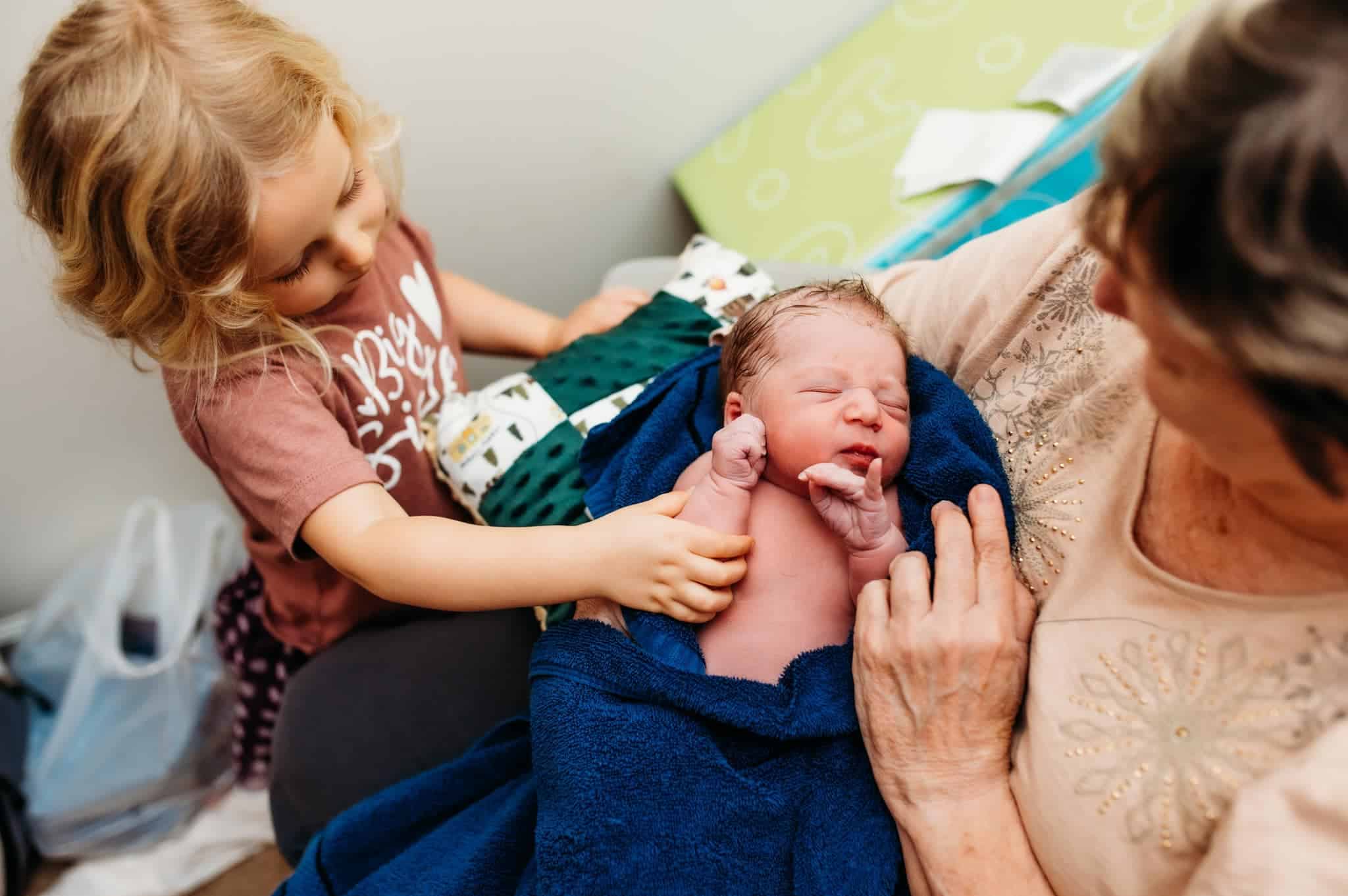 Even my pushing waves were stronger than with Aspen. It felt like it was taking forever for you to be born although it really only was 45 minutes. I kept feeling to see how close to being born you were. I was excited to be able to feel your head even though you weren’t quite low enough yet. I was so ready to meet you. Right after this, my water finally broke. After pushing on all fours for a while, my arms and legs were shaky, and I rolled onto my side. I was listening to my body on how to push when the midwife suggested my pushes would be more productive if I held them a little longer. I tried this because I was so ready to meet you. Shortly after this you were crowning. The stretching felt very different this time compared to with Aspen. Right before you were born, the midwife said you needed to be born with the next push. I believe your heart rate was low. I made sure you were born in the next two pushes.