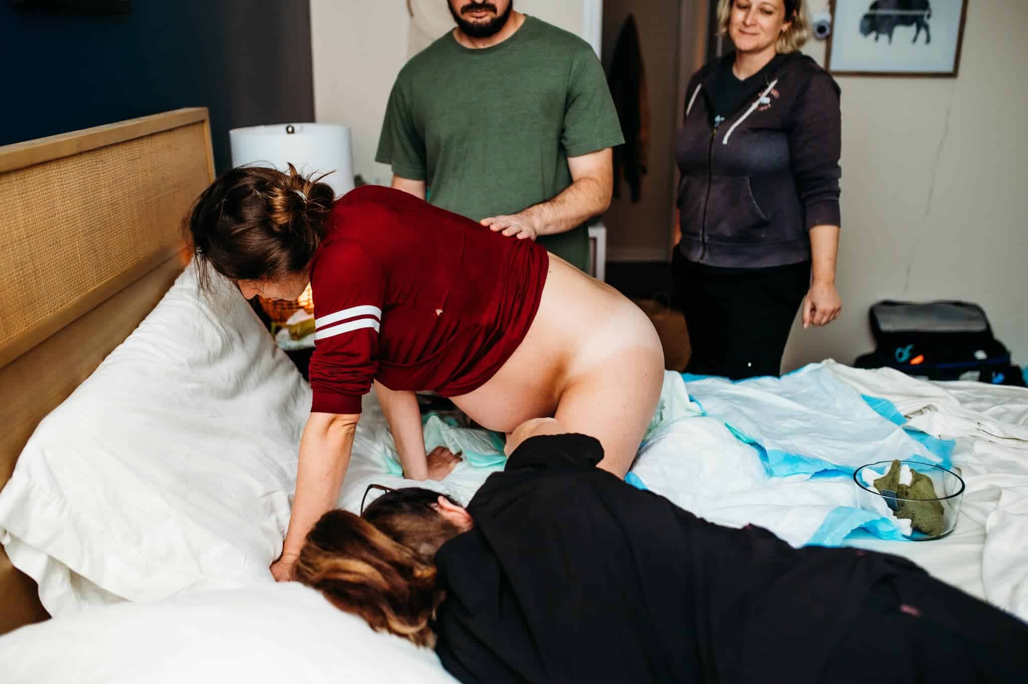 With Aspen, my water broke before I had any other signs of early birthing time. At this point I was still having waves every 20 mins, so I had Nana come over to help get Aspen breakfast; I didn’t feel like I could get out of bed. At this point I called Daddy and told him I thought he should come home, so he did. Around 10:30am, I called our Doula Katie and she suggested trying the Miles circuit to try to get some waves that were closer together. Literally 5 minutes after getting in the first position, my waves were consistently 6 mins apart for quite a few waves in a row. After this, Katie came over.