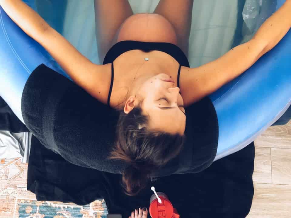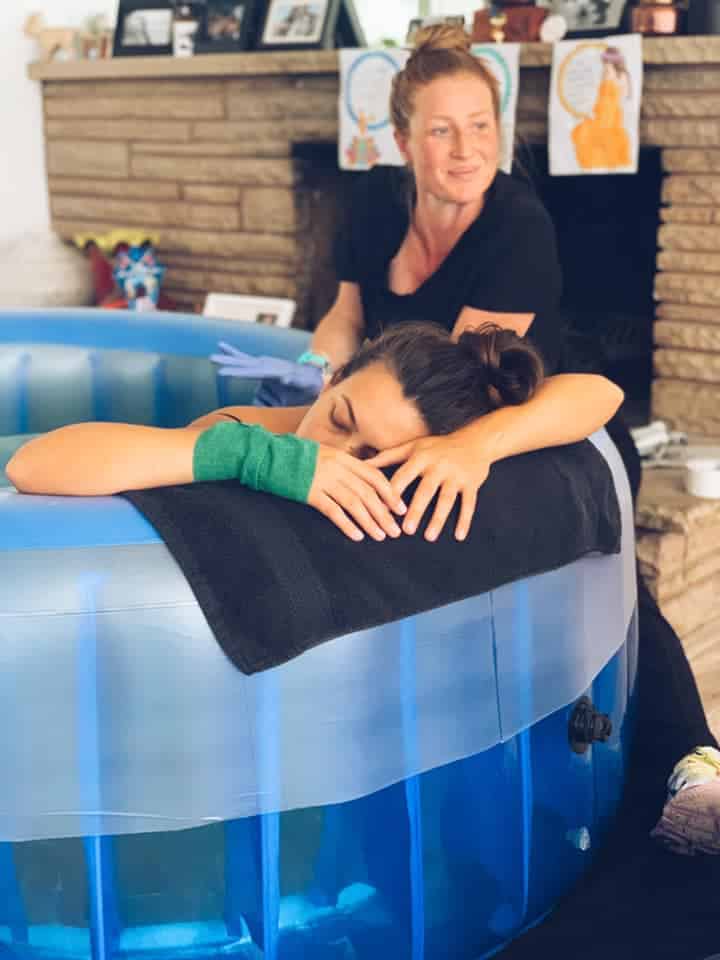 My doula gives me counter pressure with each wave. Between the warm water and the counter pressure I’m feeling like this is already a lot easier than my first birth. Everything just feels more innate this time around. I’m able to have some conversation between waves with Kyle and my birth team. I feel so incredibly happy and peaceful during this time. What an honor it is that my body can birth here in my own home. Tears start rolling down my face and Kyle asks why I’m crying. “I’m just so happy” I respond. More waves continue to roll in and I surrender each time. Letting go and allowing my body to do what it’s made to do. I switch to a reclined position for a while and my doulas gives me counter pressure through my knees—switching off and checking baby’s heart rate.