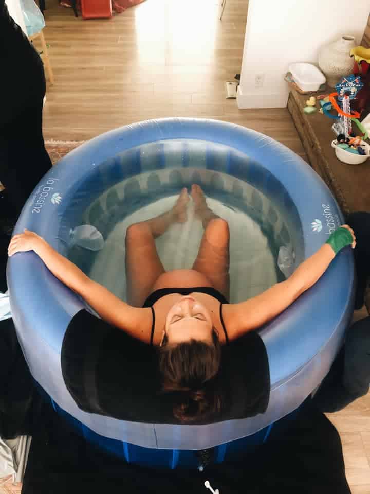 At about 2 am I wake up because my waves are progressing in intensity and starting to get closer together. They are about 6-7 minutes apart. Although the intensity has picked up, I would still say they felt mild. Kyle starts timing them for me as I put in my headphones and start listening to my Hypnobabies tracks like Easy First Stage (Hypnobabies main birthing time track). We decide that it’s probably time to get the birthing pool blown up. I stay in bed and continue my hypnosis as Kyle gets the living room set up with the pool and towels. I had hung all my watercolor birthing affirmations in our front room—something that I had been working on over the past few weeks.