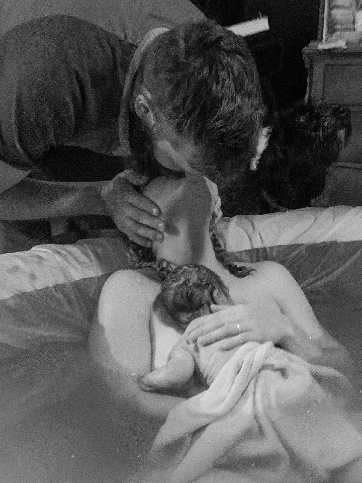 Breathing got deeper through my nose and my picture words and affirmations got louder, longer and more intense but I worked through them all with an open heart and mind reminding myself this is what my body is good at and meant to do. My midwife came at 11 and checked me. I didn’t want to know but I did… I was 8cm and nicely thinned and ready to go. Soulja and second midwife came shortly after. I wanted my water to break naturally and I have wanted a water birth with all my children and have yet to have one. So, I borrowed a pool from a friend and as soon as it was set up, they got me in it. A word I added at this time was “Relax” it helped me get through the stronger waves as I also focused on my doula and watched her say affirmations with me. While hubby stroked my back, my doula touched my shoulder and stroked my arm as I worked through them.