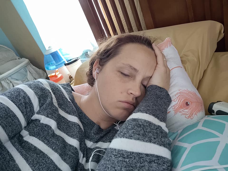 Throughout the day I would walk around with my headphones on with my tracks playing in while in center switch (Hypnobabies technique for eyes-open hypnosis) and trying to eat and drink a bit. Mostly my favorite was Easy First Stage (Hypnobabies main birthing day track). But I did change to Special Safe Place and Easy Comfortable Childbirth a few times. I tried Deepening Your Hypnosis (Hypnobabies track to deepen the level of hypnosis) again and it was hard for me to get into during my waves, so I stuck with Easy First Stage. I would not only listen to my tracks but during waves out loud wild use my “‘Peace” cue word (Hypnobabies cue for instant physical comfort), picture my bright orange anesthesia, and would say open and baby come out. Visualizing and saying it out loud was a huge help for me.