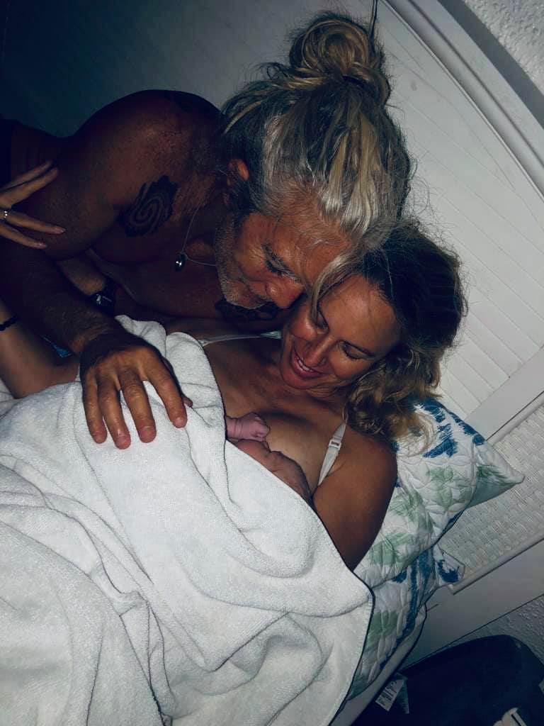 My husband was still holding the kettle with water for the birthing pool. Afterwards he said I seemed to know exactly what to do and when I caught Koa, I turned him around and pulled him out of the water up to my chest.