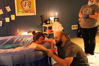 I got into the birthing pool around 11 and continued to listen to Easy First Stage. A few times my earbuds popped out and I was able to get back into hypnosis easily, but they didn’t fit well since I was in the water and very sweaty and they were very distracting. At one point I moved to my couch to lay on my side and my water burst. I started to feel relief and went back into the pool.