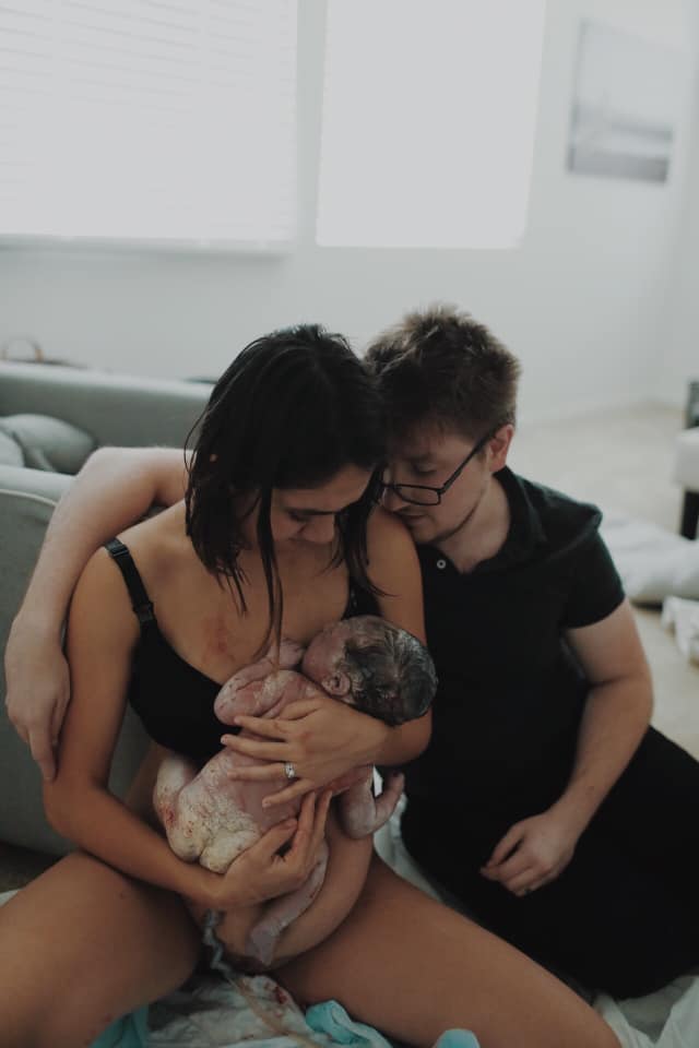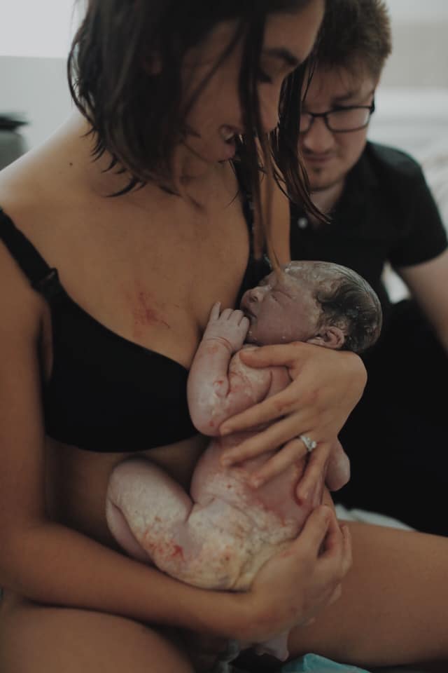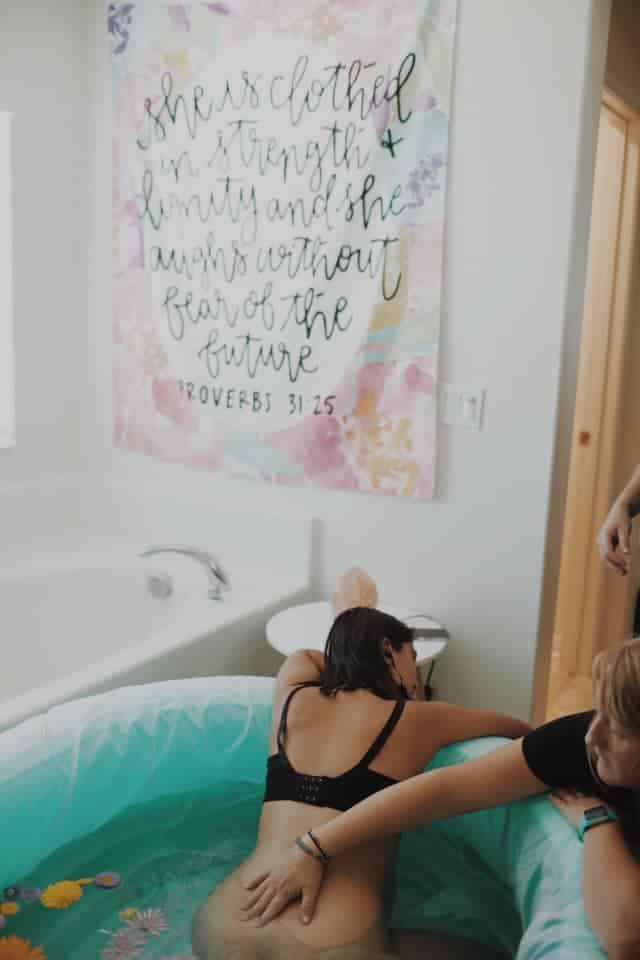 I started feeling pushing waves in the tub but doubted myself for a second as my water hadn’t broken. With my first, my water broke first and then I went into my birthing time.