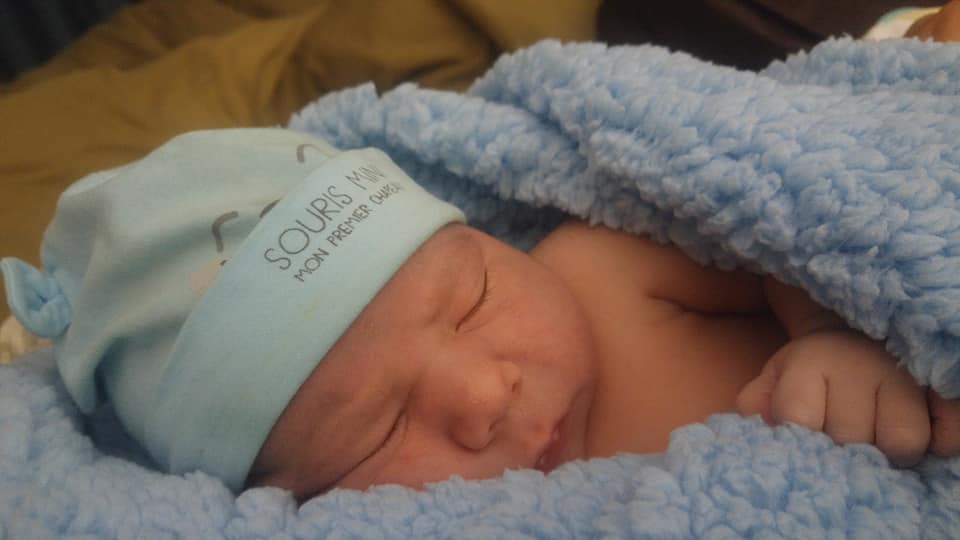 I have the great pleasure to present you Olivier Hamel born the 3rd of July 21h06 at 9.5lbs and 21in! I was at 40+2 weeks.