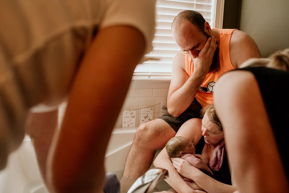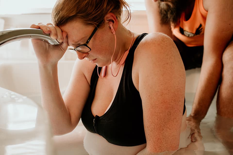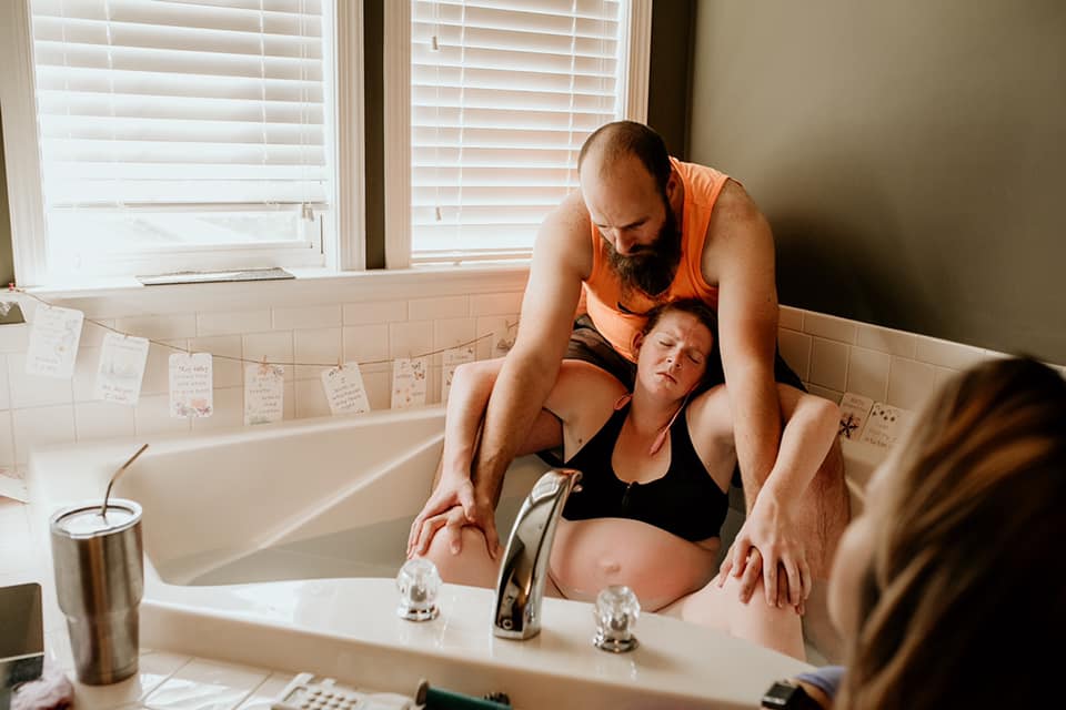 It was about the same time I started doubting myself, but I knew that meant I was heading to transformation (Hypnobabies word for transition) so I pushed those thoughts aside best I could! My wonderful husband sat behind me in the tub continuing the counter pressure! At some point, I said they were starting to feel pushy and my midwife just said, “that’s okay, let it build and do what you have to do!” I am so used to other experiences of being told “yup you’re good” that I was initially like hmmm but then I knew it was all up to me!