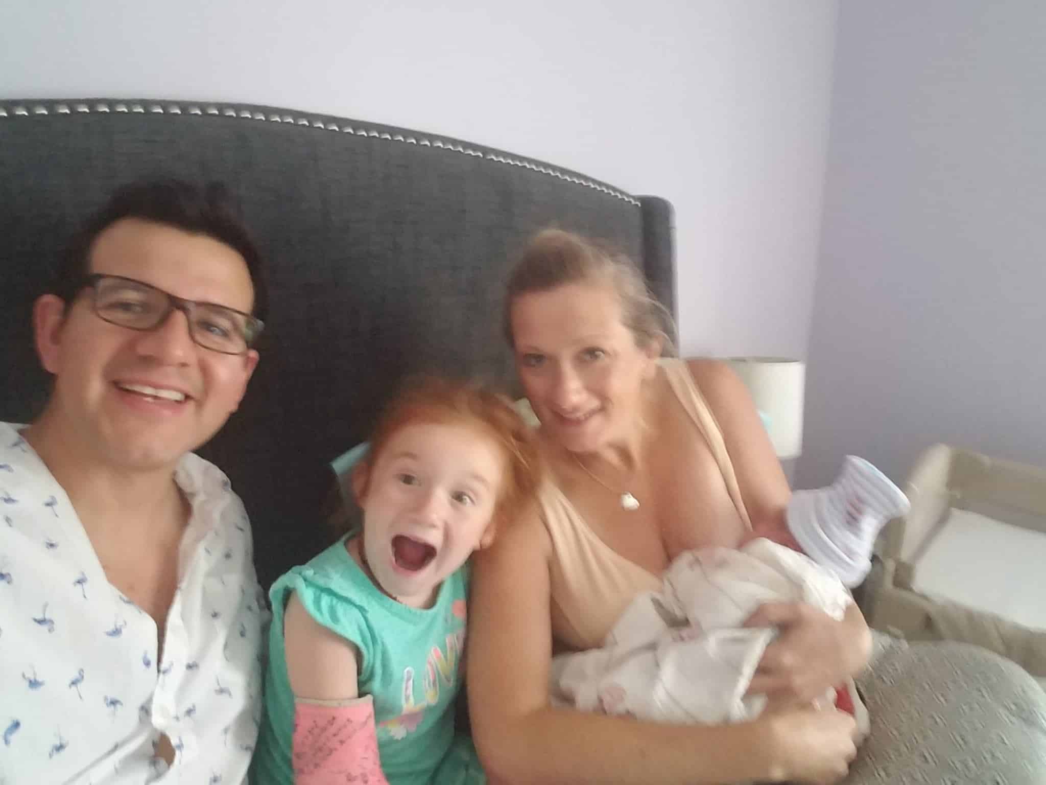 Then my mom called and asked if we had things set up and if we were ready for her and Alia to come down and watch the birth. Allan laughed and told her that the baby was already born. Oh, the best laid plans… my daughter was not here to see the birth, but she did get to come down and meet her brother when he was only a few minutes old. Our little family of 4 was able to sit on our bed and all bond with little Aidan. It was the nicest feeling to be in the comfort of my own home and just be able to enjoy each other’s company.