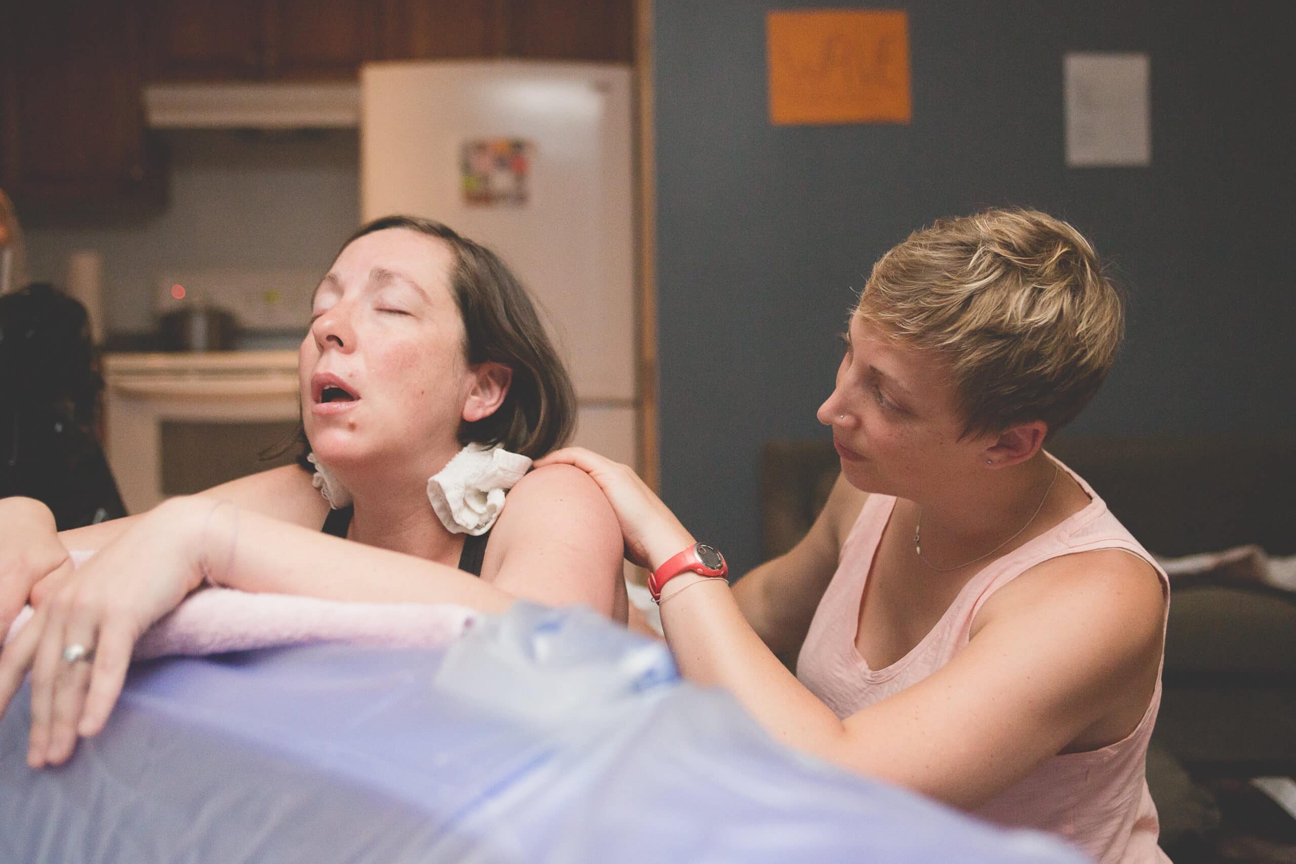 I remember hearing the team starting to assemble (everyone came pretty quickly) and by shortly after 10 pm, everyone had arrived. I got a break between waves and quickly moved downstairs to my birthing suite where our final home birth preparations were already taking place.