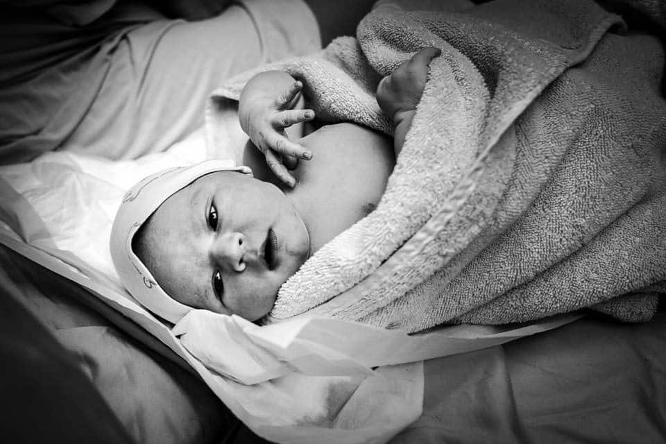 They asked if I wanted to move to the pool, and I expressed that I didn’t know I could. After a pushing wave, my team got me up and I waddled out to the pool. My husband was frantically putting on the Pushing Baby Out track when he heard I was pushing I was a little unsure of how to get in the pool, but I did. I crouched down and someone told me to feel down to see what was going on. His head was half out, and with another push, fully out, and one more, fully born. I was immediately in shock and then all I could do was laugh and smile. ?